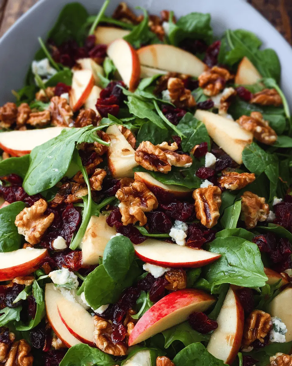 Imagine biting into crisp apples, crunchy walnuts, and hints of sweet dried cranberries, all dressed in a delightful vinaigrette. This salad is perfect for meal prep; you can whip it up in advance and enjoy it throughout the week. Plus, it’s a fantastic way to incorporate leafy greens into your diet, promoting better health and productivity.