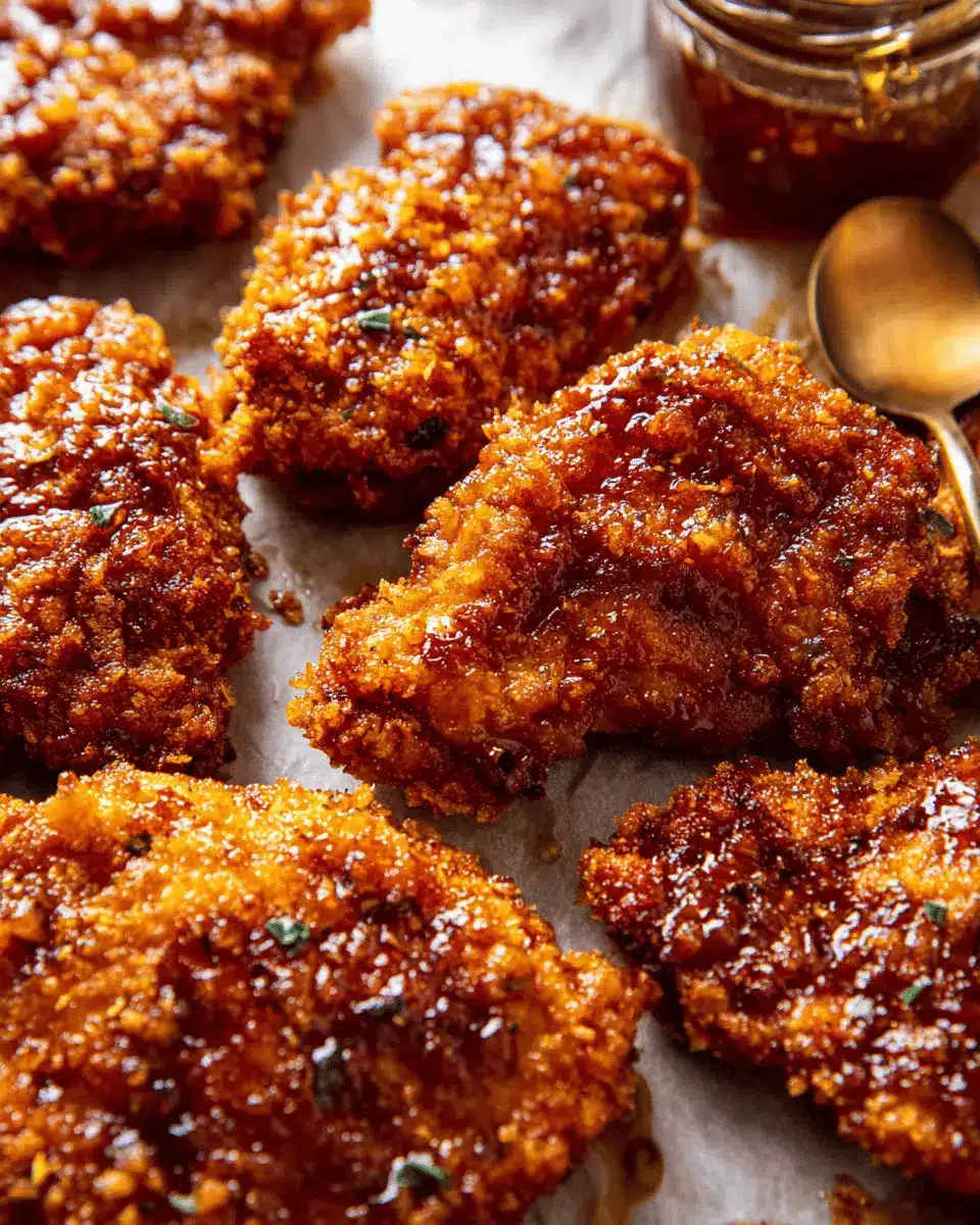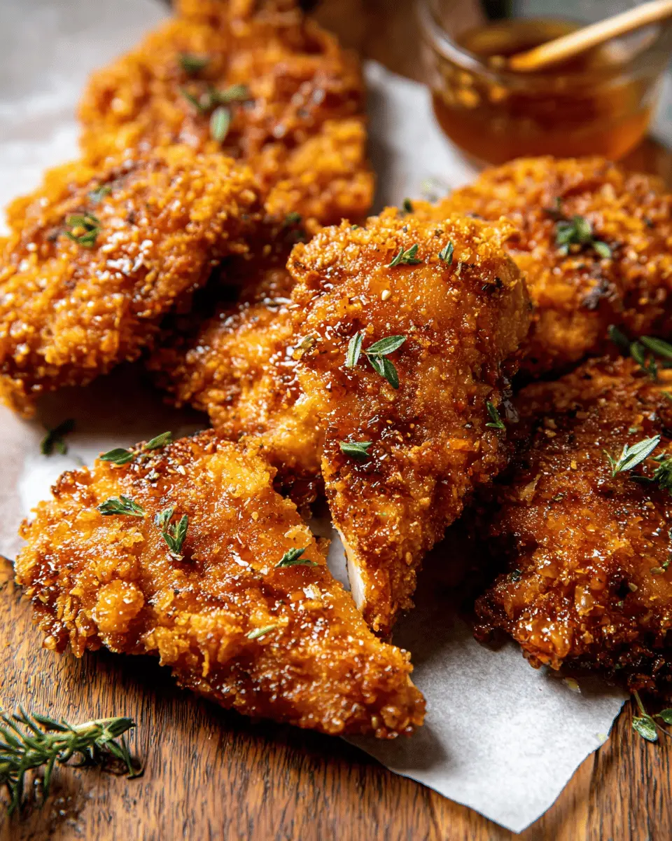 To achieve the ultimate crunch in your Baked Crunchy Hot Honey Chicken, pay attention to your breading technique. After applying the cornflake mixture, consider double-dipping your chicken: first, coat with egg and hot sauce, then dredge in the crumbs, and repeat for an extra crispy layer. Also, use a wire rack on your baking sheet so air can circulate around the chicken, keeping it from getting soggy.