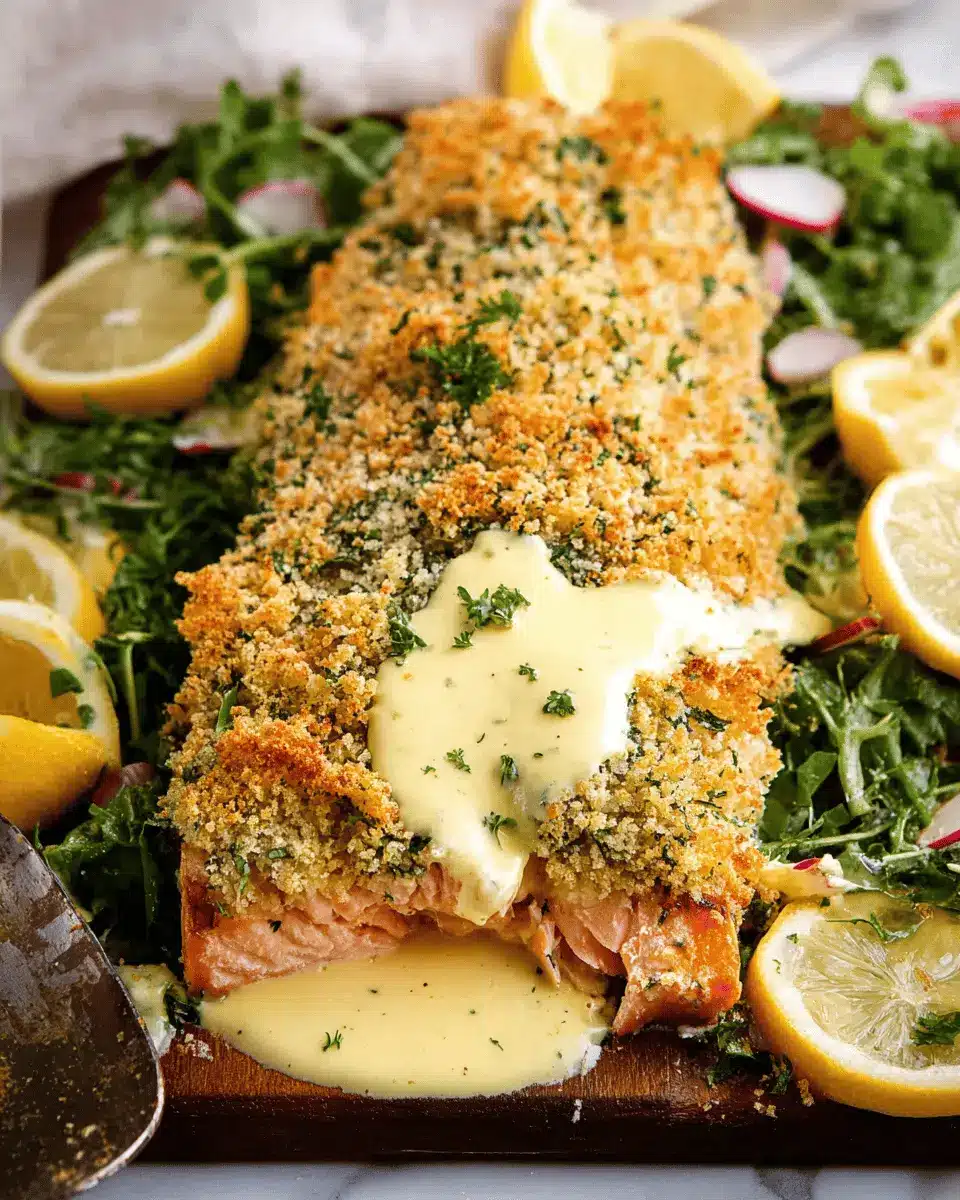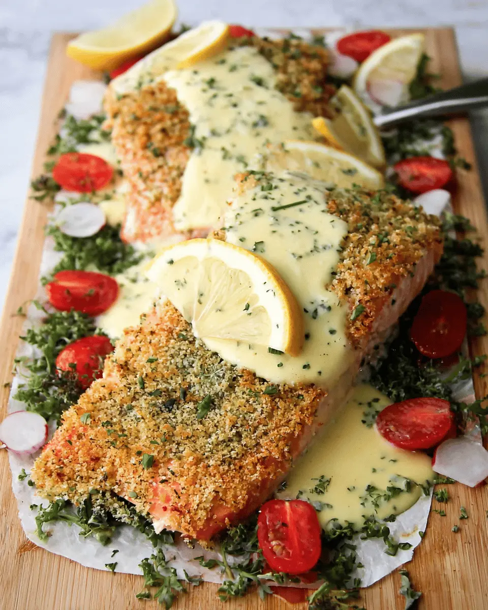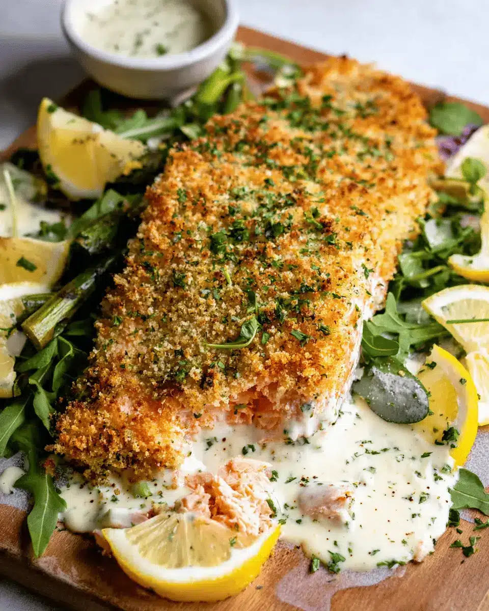 In wrapping up, Baked Parmesan Crusted Salmon is a delightful addition to any dinner table. The contrast between the crispy topping and moist salmon pairs beautifully with the creamy lemon sauce. Whether for a cozy night in or a small gathering, this recipe promises to impress your friends and family. Happy cooking!