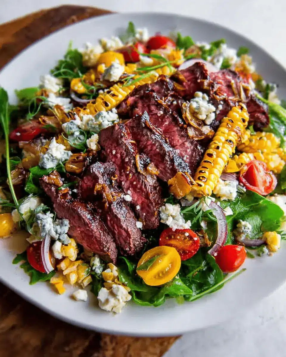 Balsamic Steak Gorgonzola Salad with Grilled Corn