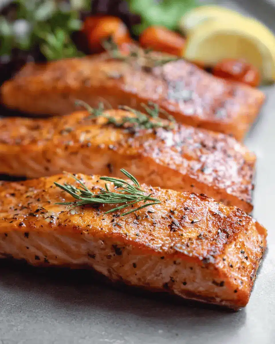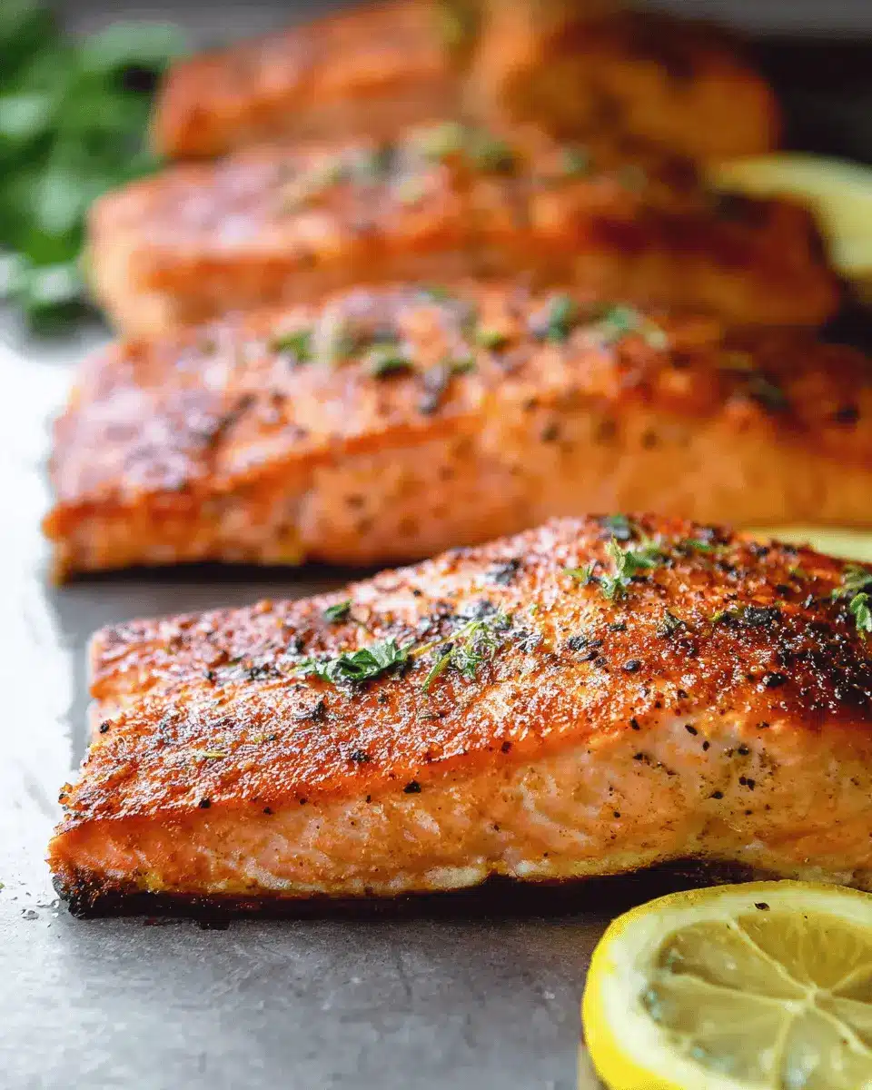 Presentation can elevate your dining experience! After baking, place the salmon on a platter and add lemon wedges and fresh herbs like parsley or dill around it for a pop of color. A drizzle of balsamic glaze not only enhances visual appeal but also adds a touch of sweetness. For added texture, consider sprinkling sliced almonds or toasted seeds on top for a delightful crunch. This simple yet thoughtful approach makes your dish visually appealing and instantly impresses your guests or family!