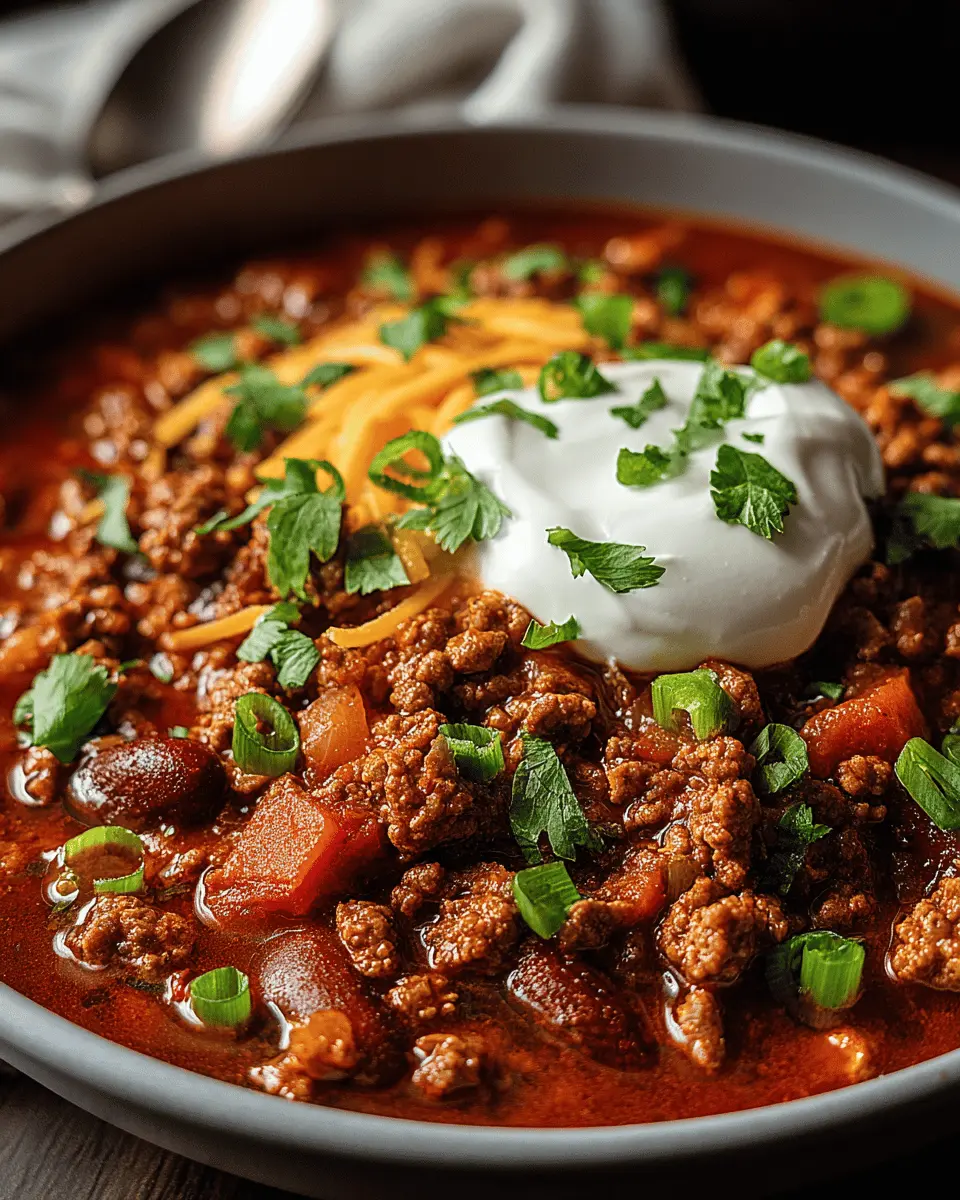 For sides, you can’t go wrong with cornbread; its sweetness complements the chili’s spiciness perfectly. Alternatively, serve your chili over rice—white or brown—so you get every drop of that rich, meaty sauce. If you want something crispy, a side of tortilla chips is just the thing!