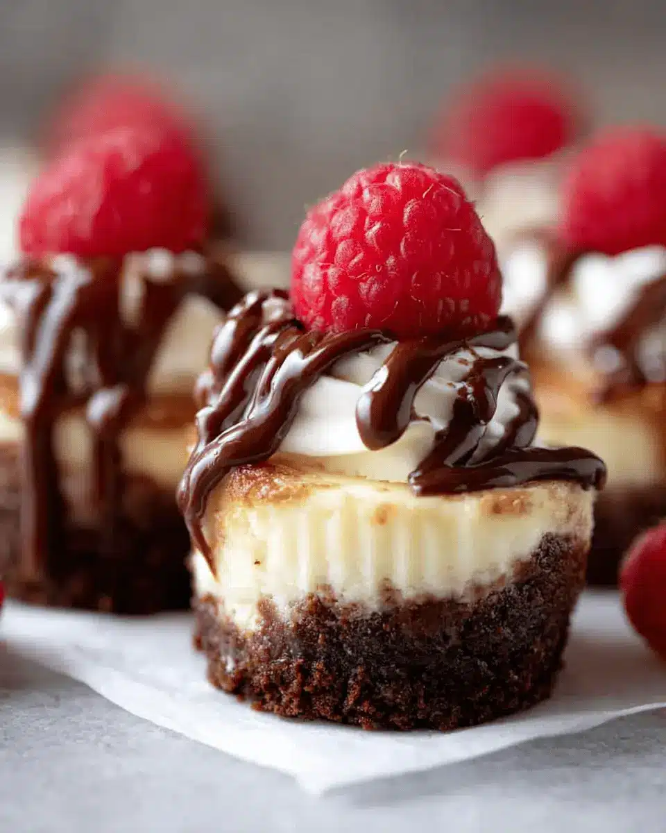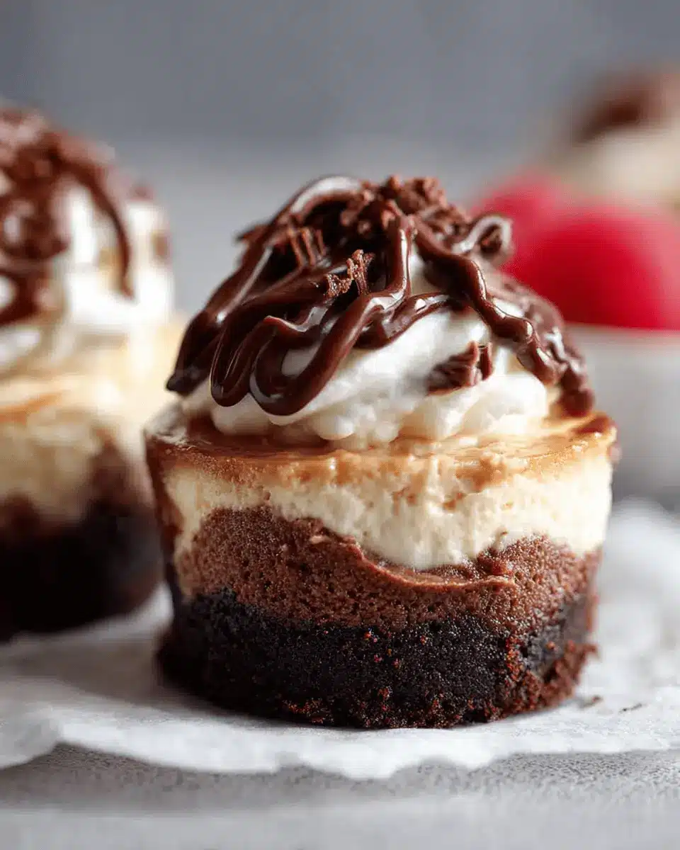 Elevate your Brownie Bottom Mini Cheesecakes with elegant yet simple presentation. Arrange them on a decorative platter and consider adding fresh mint leaves to enhance the visual appeal. For a pop of color, scatter some berries on the sides—strawberries and raspberries complement the rich chocolate flavor beautifully. You might also drizzle chocolate sauce artistically over the top of the whipped cream for an eye-catching finish.