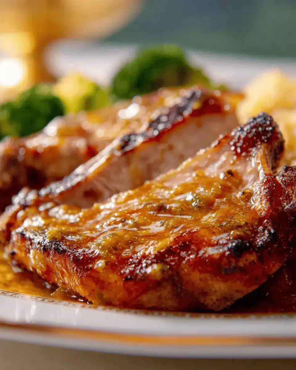 Chuletas de puerco con aderezo de mostaza y miel