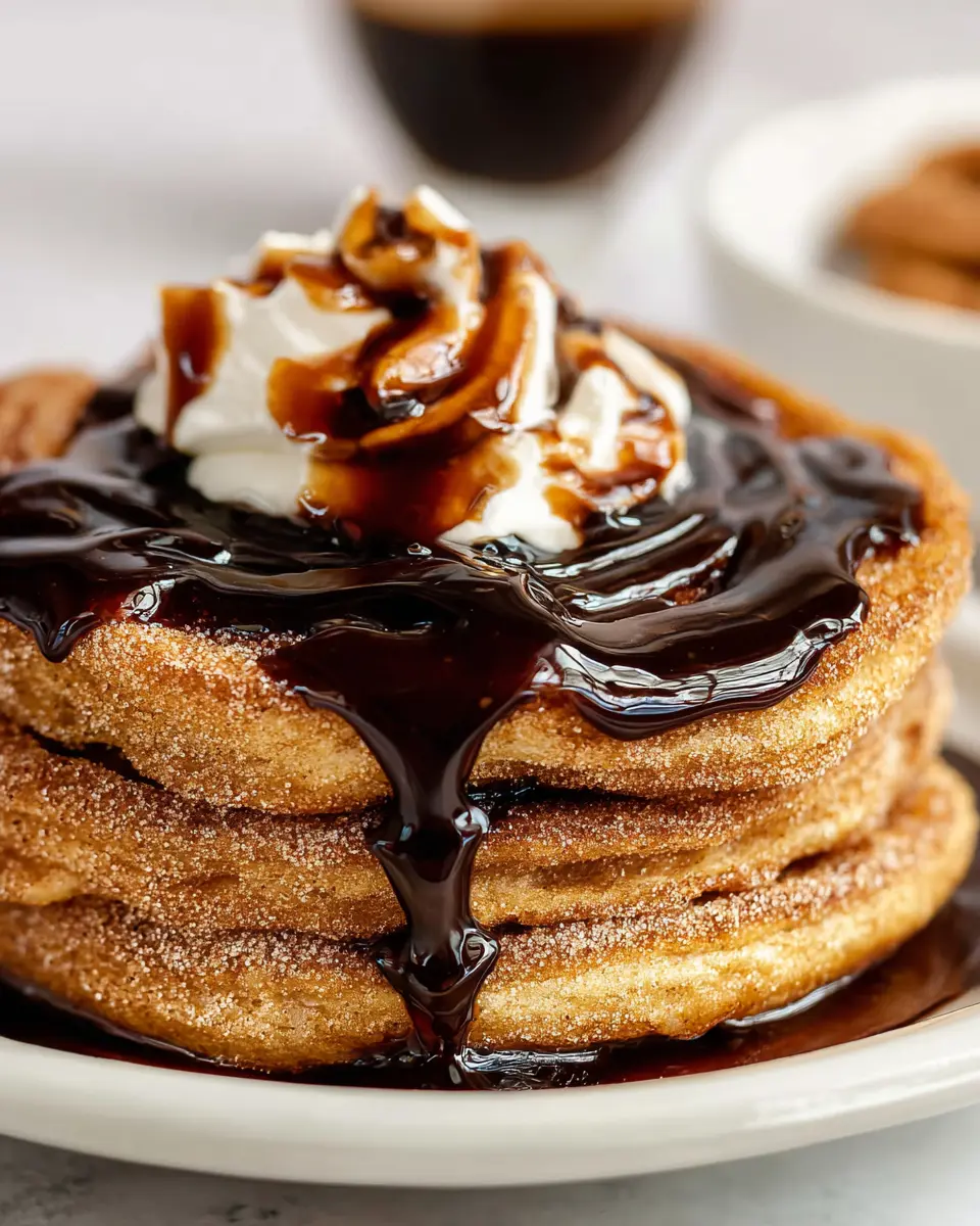 Elevate your Churro Pancakes by sprinkling them with extra cinnamon sugar or drizzling them with warm chocolate sauce. For a delightful contrast, add a dollop of whipped cream or a light dusting of powdered sugar. Don't forget about fresh fruit; sliced bananas or strawberries make the perfect topping!