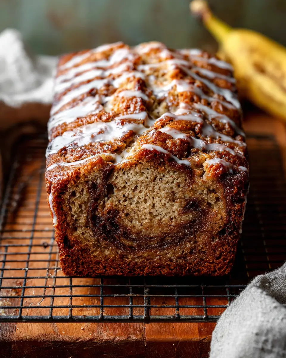 Once your Cinnamon Swirl Banana Bread has cooled, store it in an airtight container at room temperature for up to 2 days or in the fridge for up to a week. If you notice the icing seeping into the bread, don’t worry! It keeps the bread moist and delicious. For more tips on preserving baked goods, check out this guide.