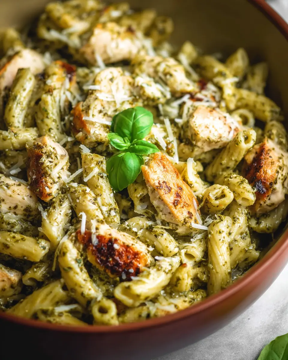 Finally, it’s time to bring the dish together! Turn off the heat and fold in ½ cup of basil pesto. A sprinkle of grated parmesan and a dash of red pepper flakes will add an extra kick! Garnish with some torn basil leaves for a pop of freshness before serving. The beauty of creamy chicken pesto pasta lies in its balance of rich flavors with a hint of herbaceous brightness—perfect for a cozy dinner or impressing guests!