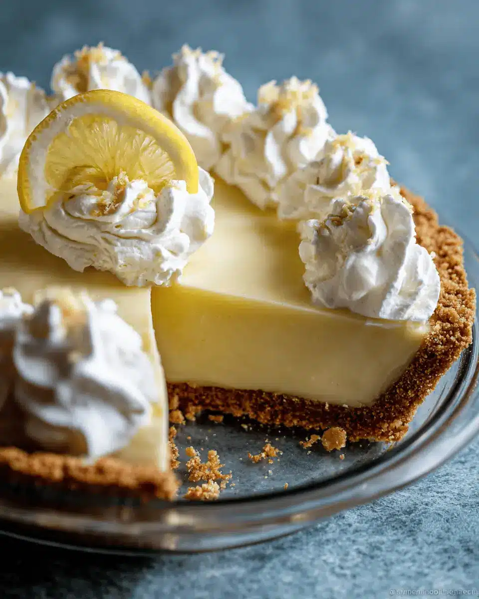 After the pie has cooled completely, cover it and chill in the fridge for at least an hour, or up to three days—this allows the flavors to deepen. When you’re ready to serve, garnish with lemon zest, lemon slices, or a dollop of whipped cream. You can also explore meringue toppings for a sweeter finish.
