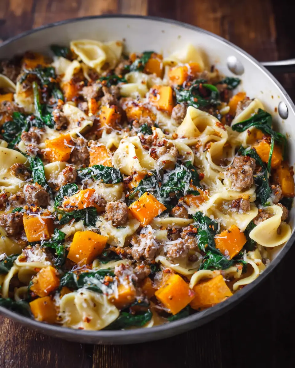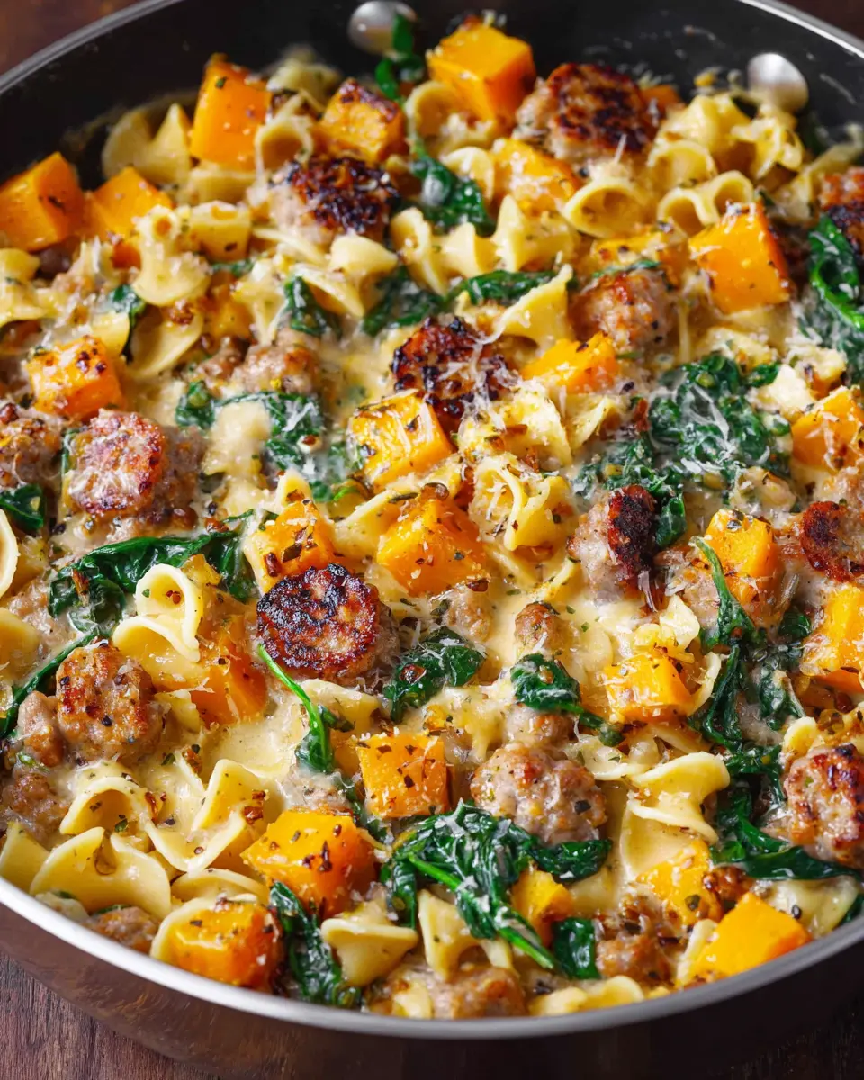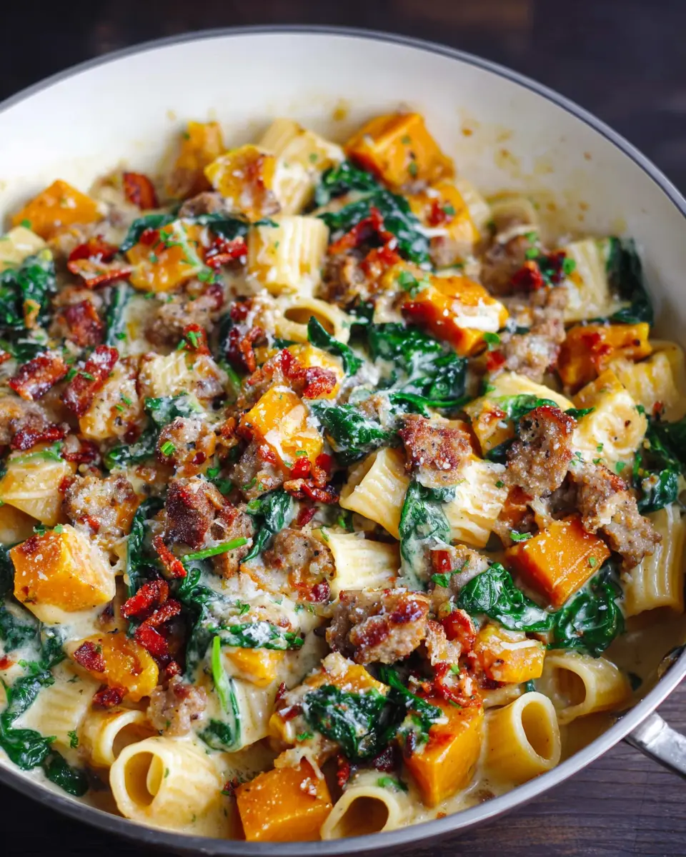 Creamy Roasted Butternut Squash Pasta with Sausage and Spinach