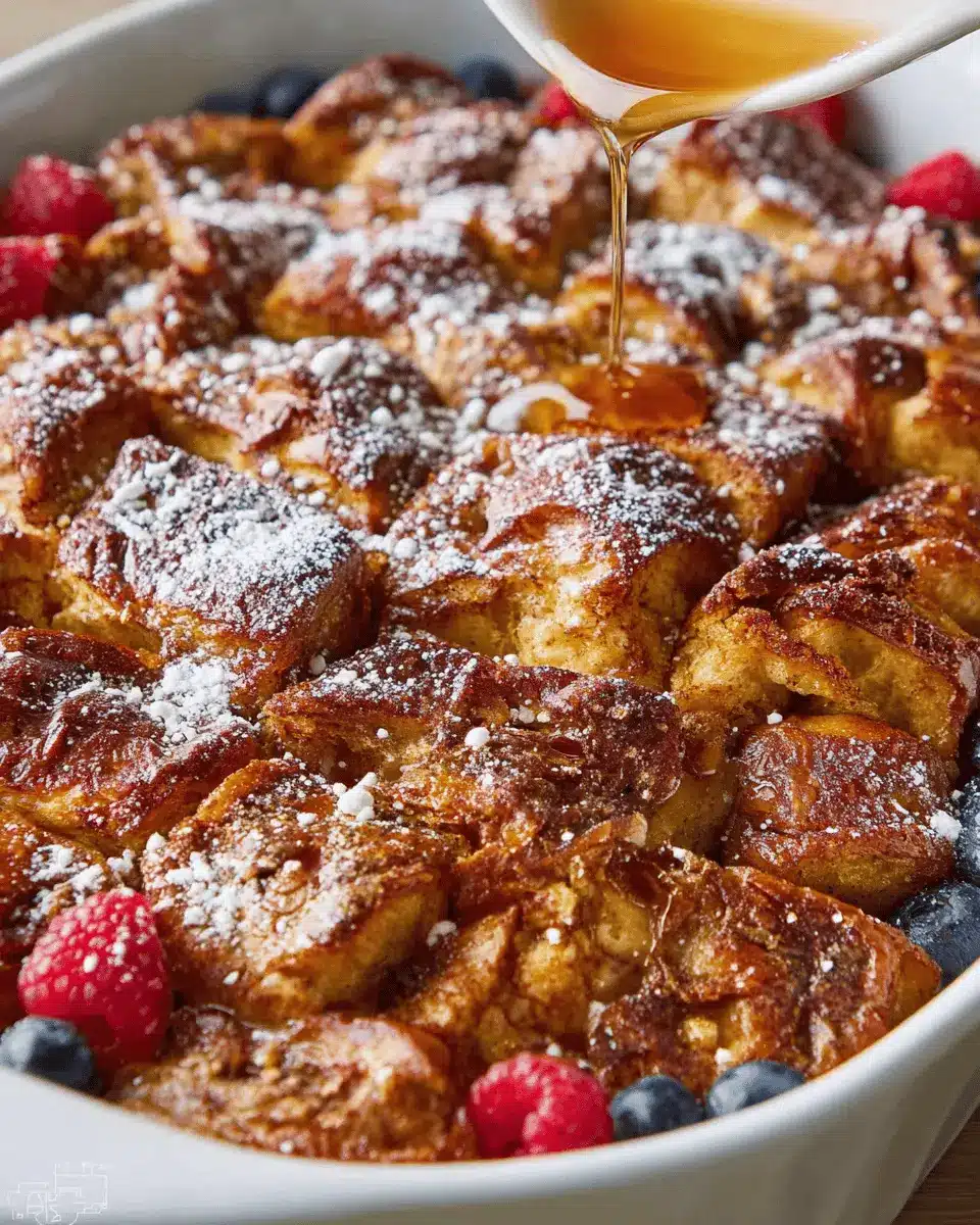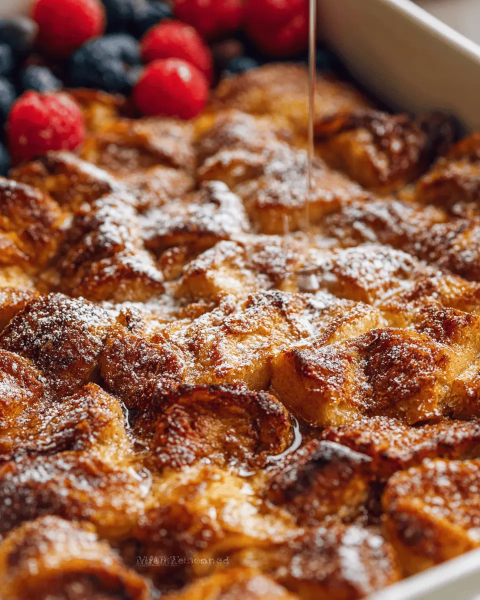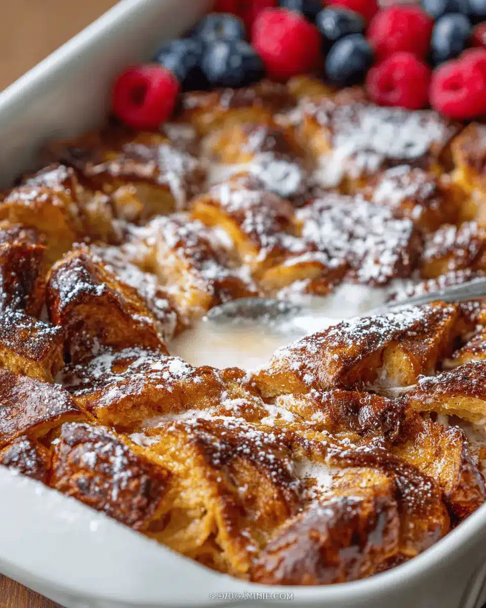 Elevate your Croissant French Toast Casserole with delightful garnishes. Fresh berries like strawberries, blueberries, and raspberries add vibrant color and a pop of flavor. Drizzle with pure maple syrup or a dusting of powdered sugar for extra sweetness. For a sophisticated touch, consider a dollop of whipped cream or a sprinkle of toasted almonds for added texture. These small touches not only enhance the visual appeal but also create a memorable brunch experience.