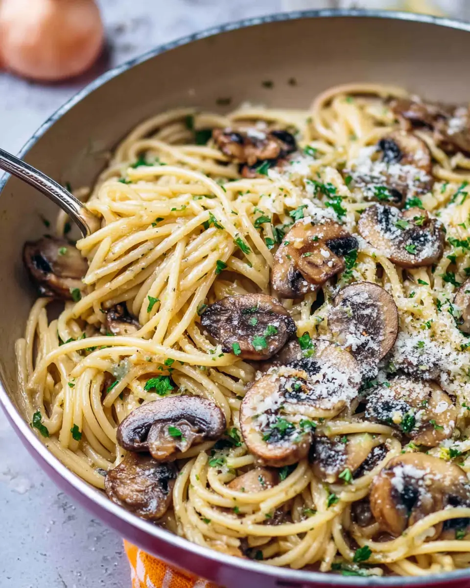 Looking for a plant-based twist on our easy mushroom garlic spaghetti recipe? Just swap the Pecorino Romano cheese with nutritional yeast to get that cheesy flavor without the dairy! You can also enhance the dish by adding sautéed spinach or cherry tomatoes for extra nutrition and vibrancy. Top it off with a drizzle of vegan pesto for a delightful flavor boost.