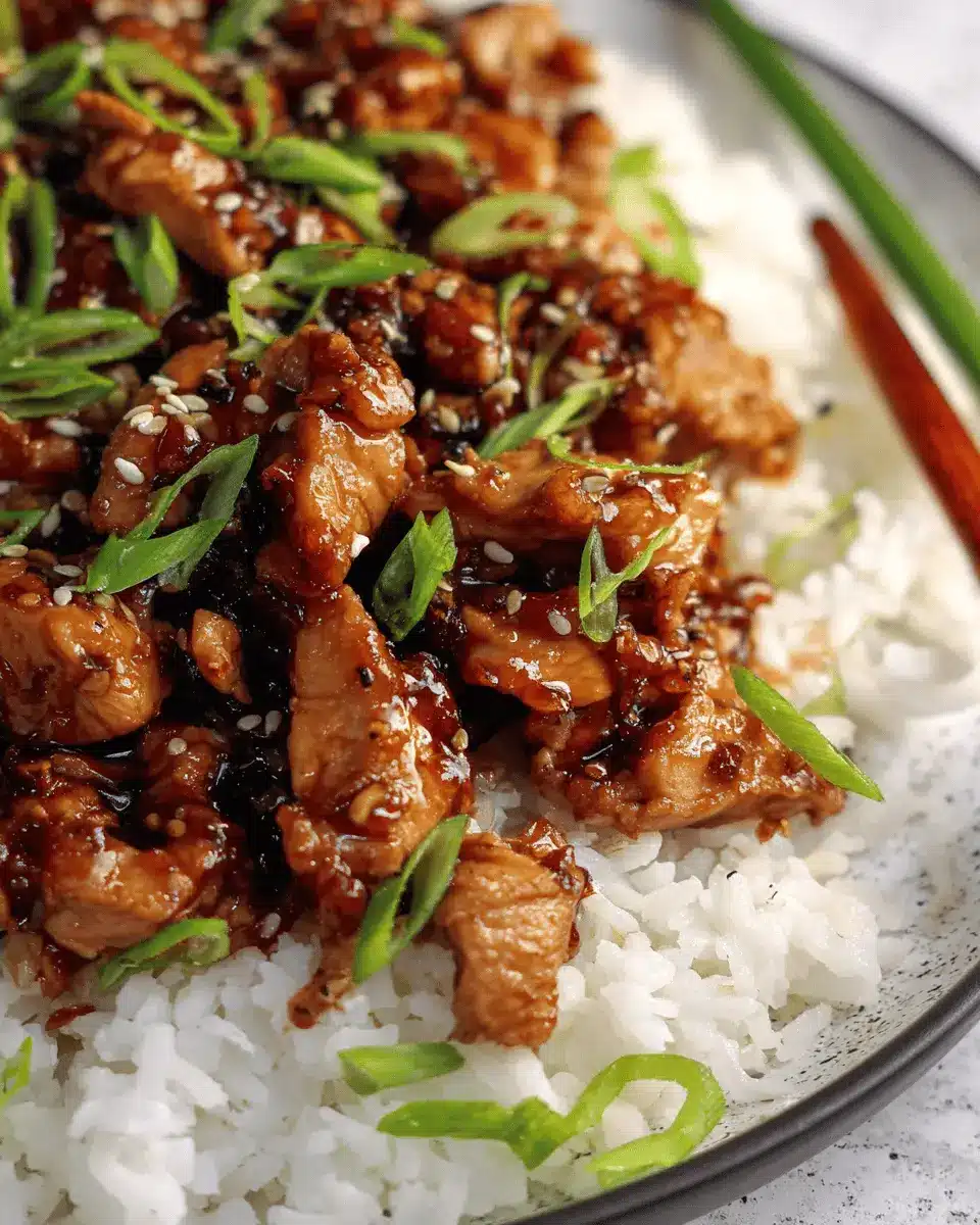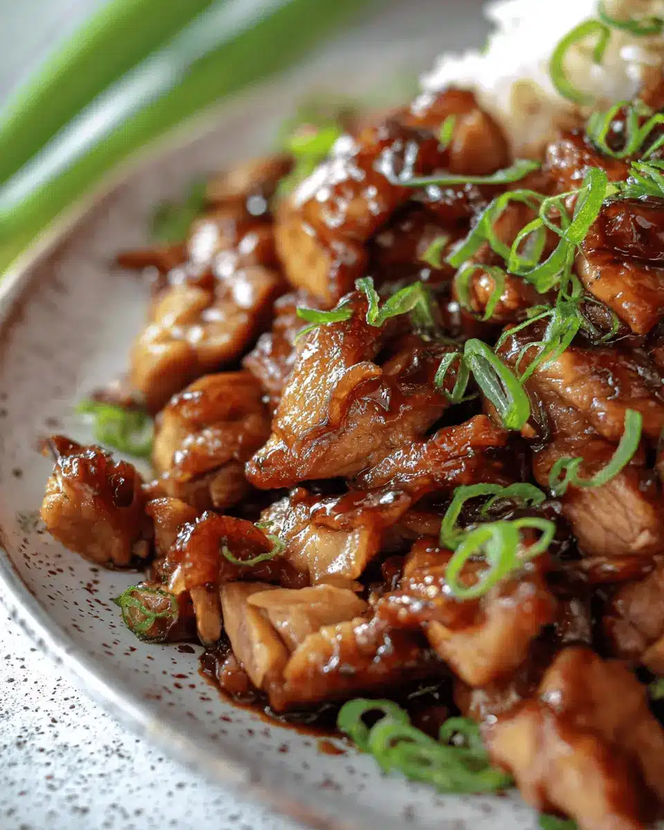 For a fun twist, serve your Bourbon Chicken in lettuce wraps for a low-carb option, topped with fresh cilantro and a squeeze of lime. Alternatively, assemble it over a bed of quinoa for added protein and texture. For a crowd-pleasing platter, create a family-style serving by arranging the chicken on a large board, garnished with green onions, and surrounded by small bowls of dipping sauces like sweet chili or soy sauce. This not only looks impressive but also encourages sharing!
