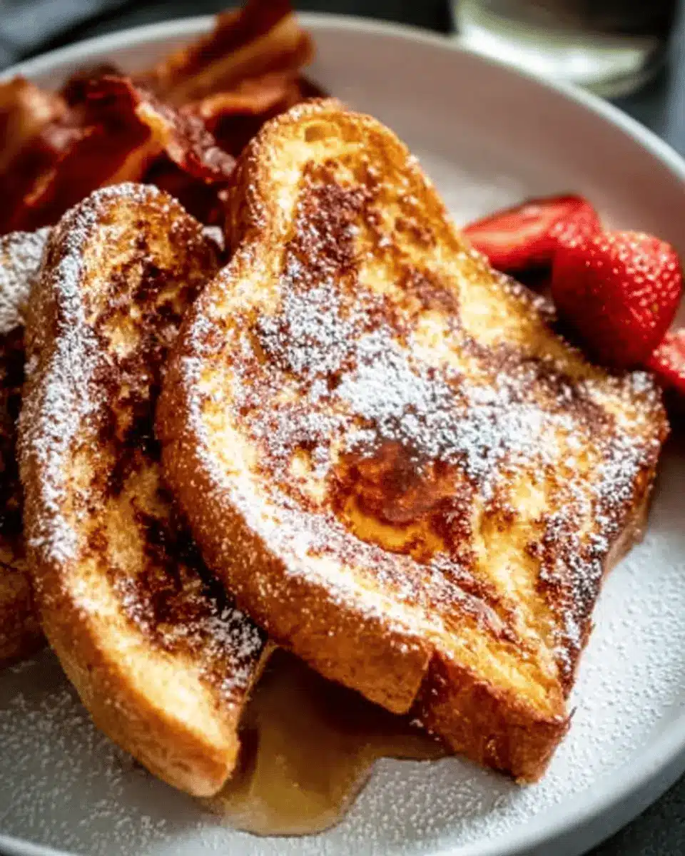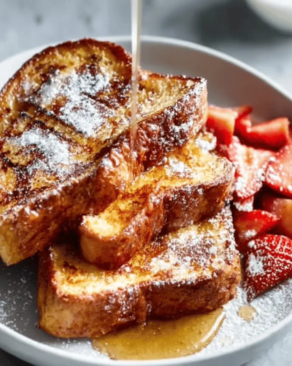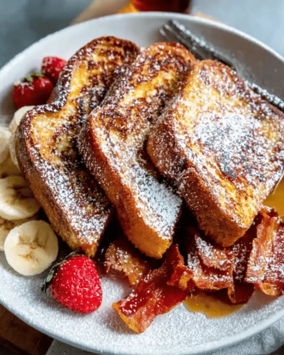 Finally, plate your golden French toast while it’s still warm. You can serve it with your favorite syrup or fruit toppings. A sprinkle of powdered sugar adds a nice finishing touch that will impress your guests—or simply satisfy your craving.