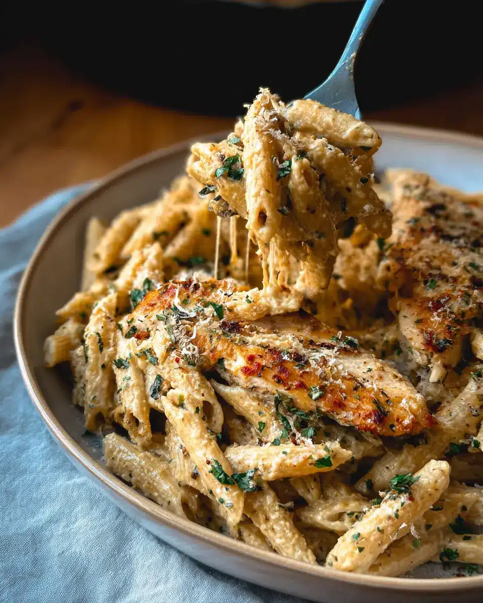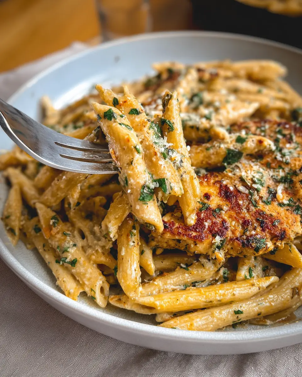 To achieve juicy and flavorful chicken in your Garlic Parmesan Chicken and Pasta, start by patting the chicken dry before seasoning it. This not only helps the seasoning adhere better but also ensures a delightful sear. Cook the chicken on medium heat, turning only once, so you lock in those flavors. Use a meat thermometer to check for doneness—165°F is your magic number.