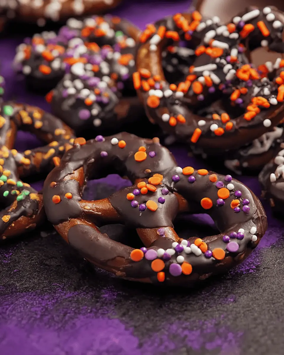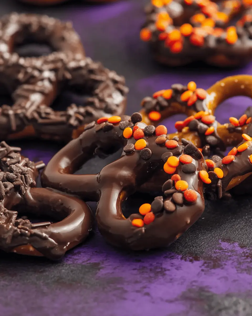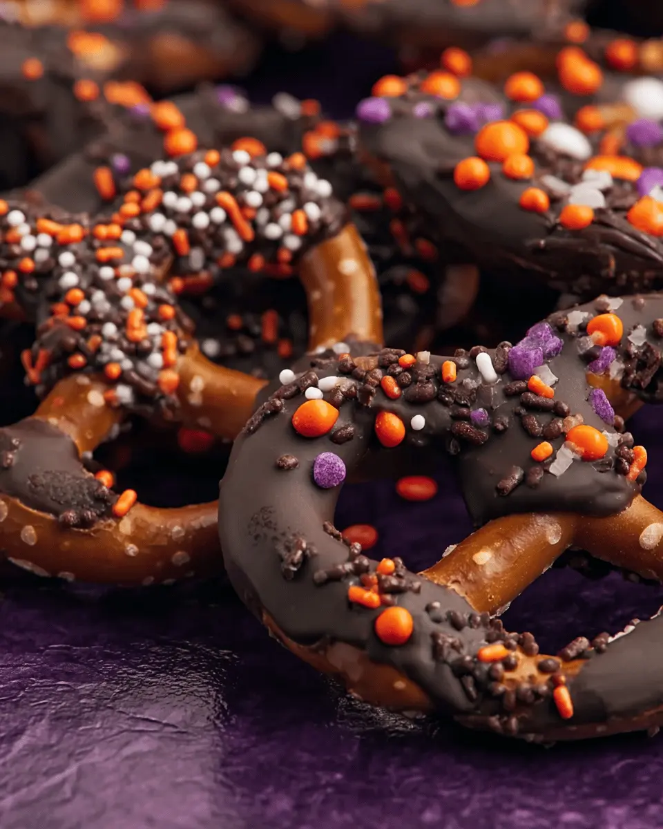 - Witch Hat Pretzels: Dip in black or purple and add colorful sprinkles.