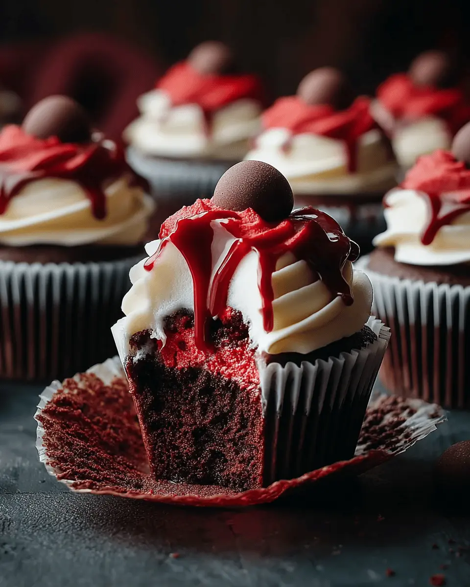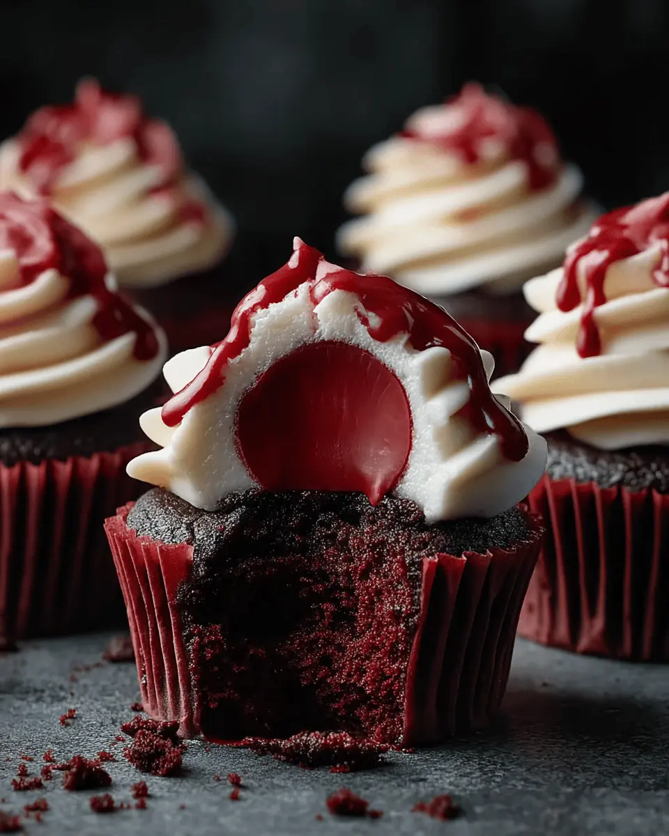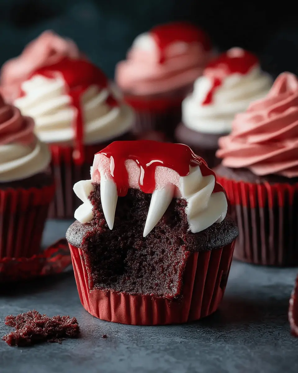 Creating a batch of Halloween Vampire Bite Cupcakes is a delightful way to get into the spooky spirit! These cupcakes are not just delicious; they’re visually captivating with their blood-red filling peeking out as if the cupcakes have just been bitten into. Let’s dive into the steps to make these hauntingly good treats!