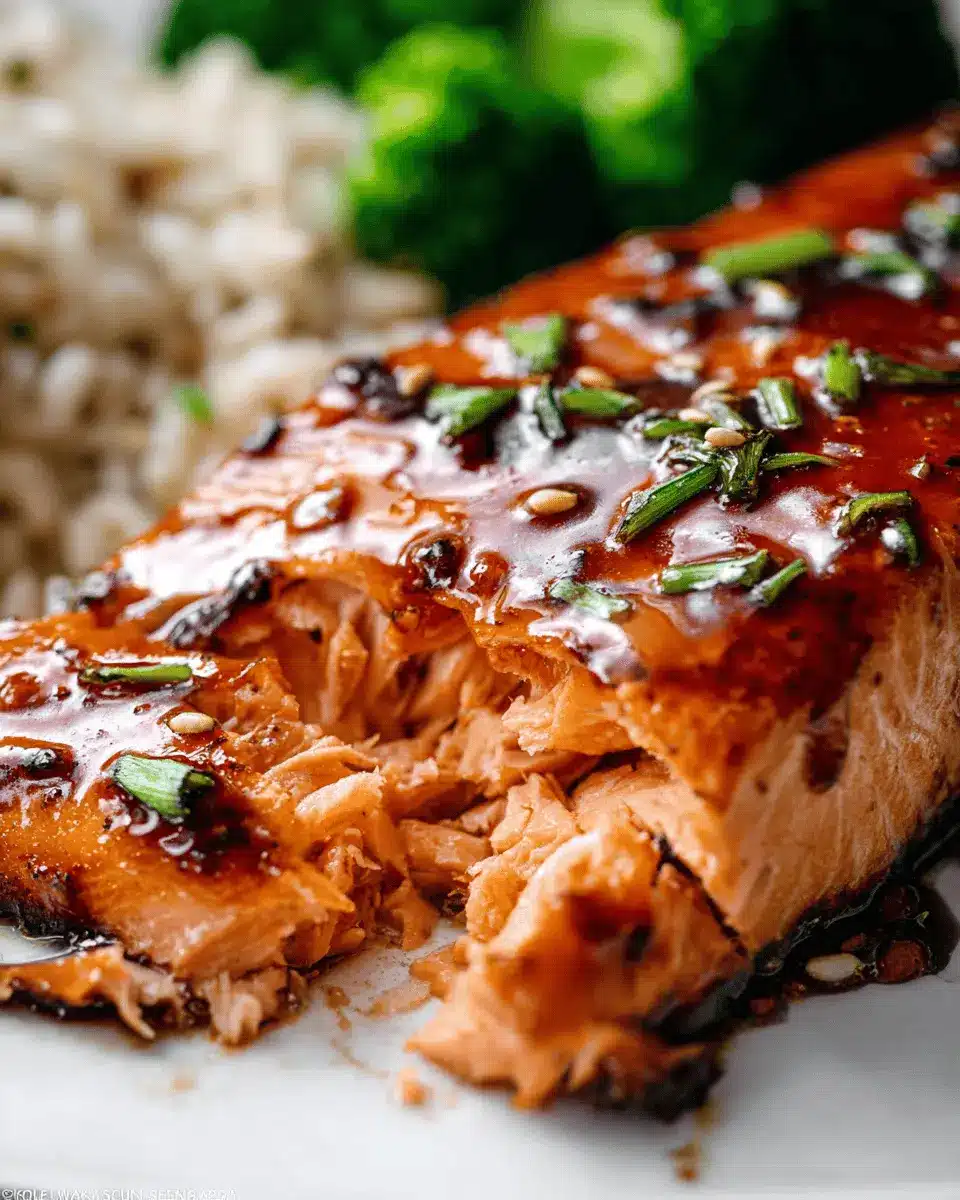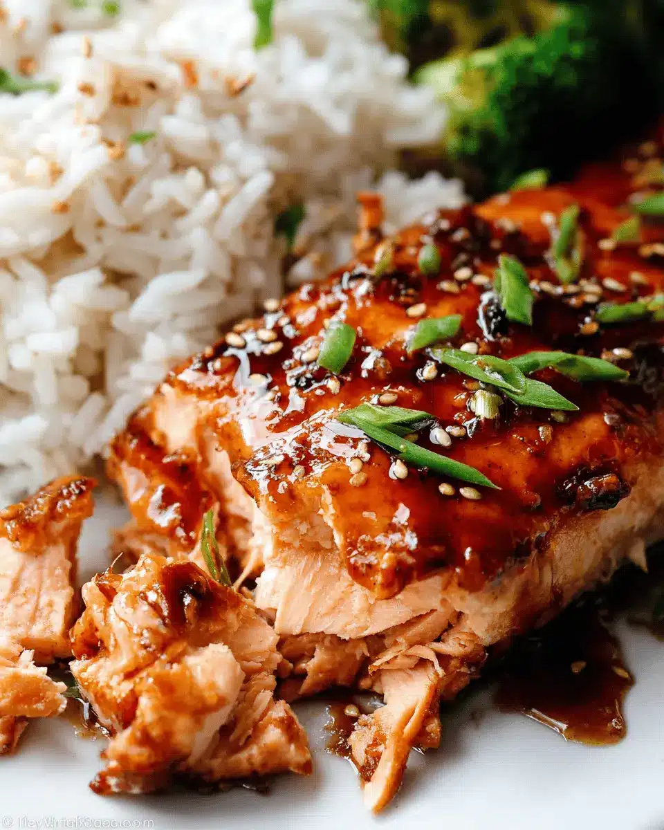 Pair with Sides: Serve the salmon alongside fluffy jasmine rice or quinoa for a satisfying base. Steamed broccoli, sautéed bok choy, or a fresh garden salad adds vibrant color and balance.