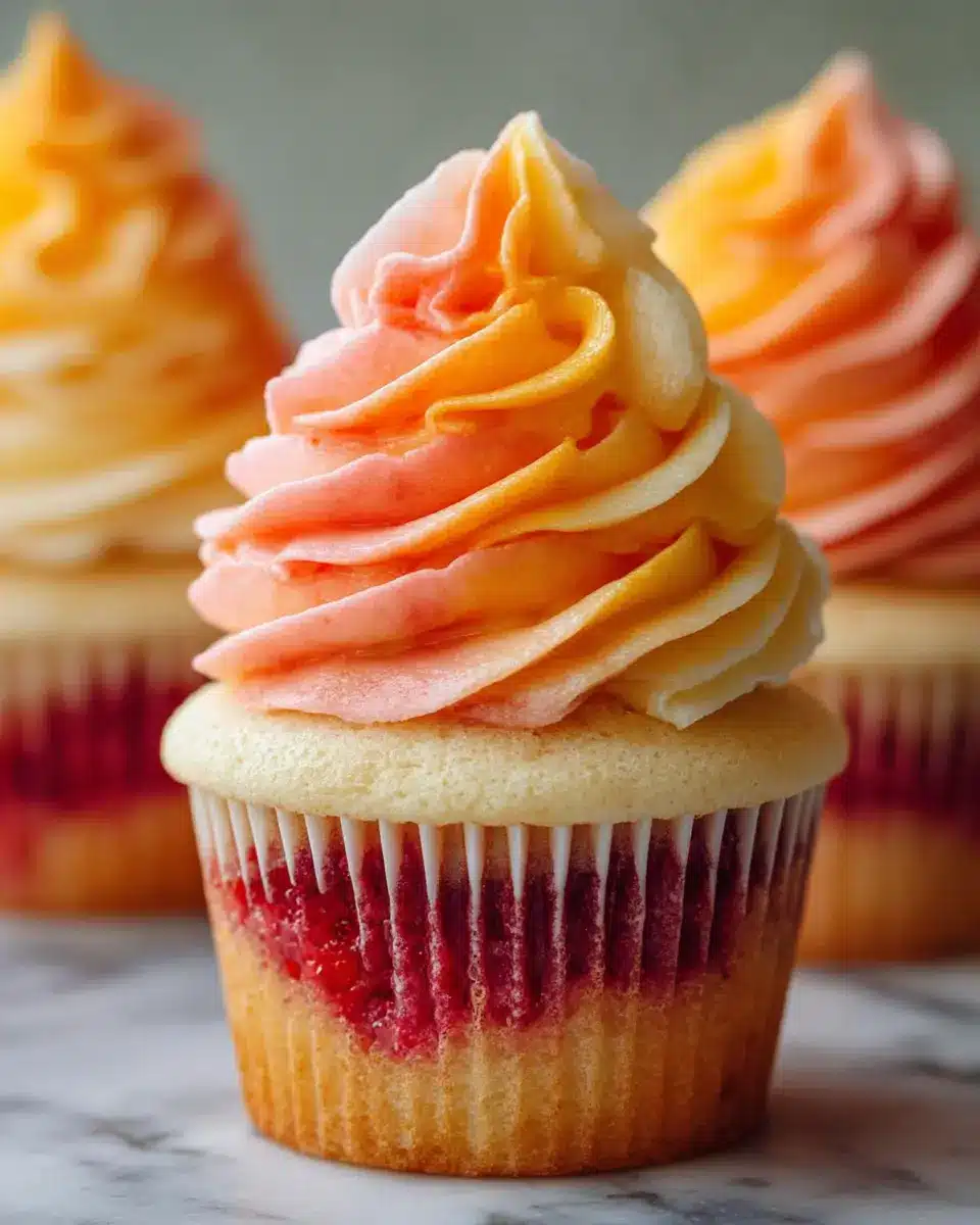 In summary, these Mango Strawberry Sunset Cupcakes are not just visually stunning; they carry a delightful medley of flavors that can brighten any occasion. Easy to make and filled with a surprise jam center, these cupcakes bring a taste of summer to your dessert table. Enjoy baking!