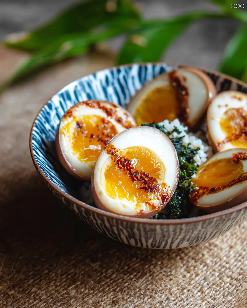 Let the eggs soak in the marinade for at least 6 hours, preferably overnight, to achieve full flavor infusion.