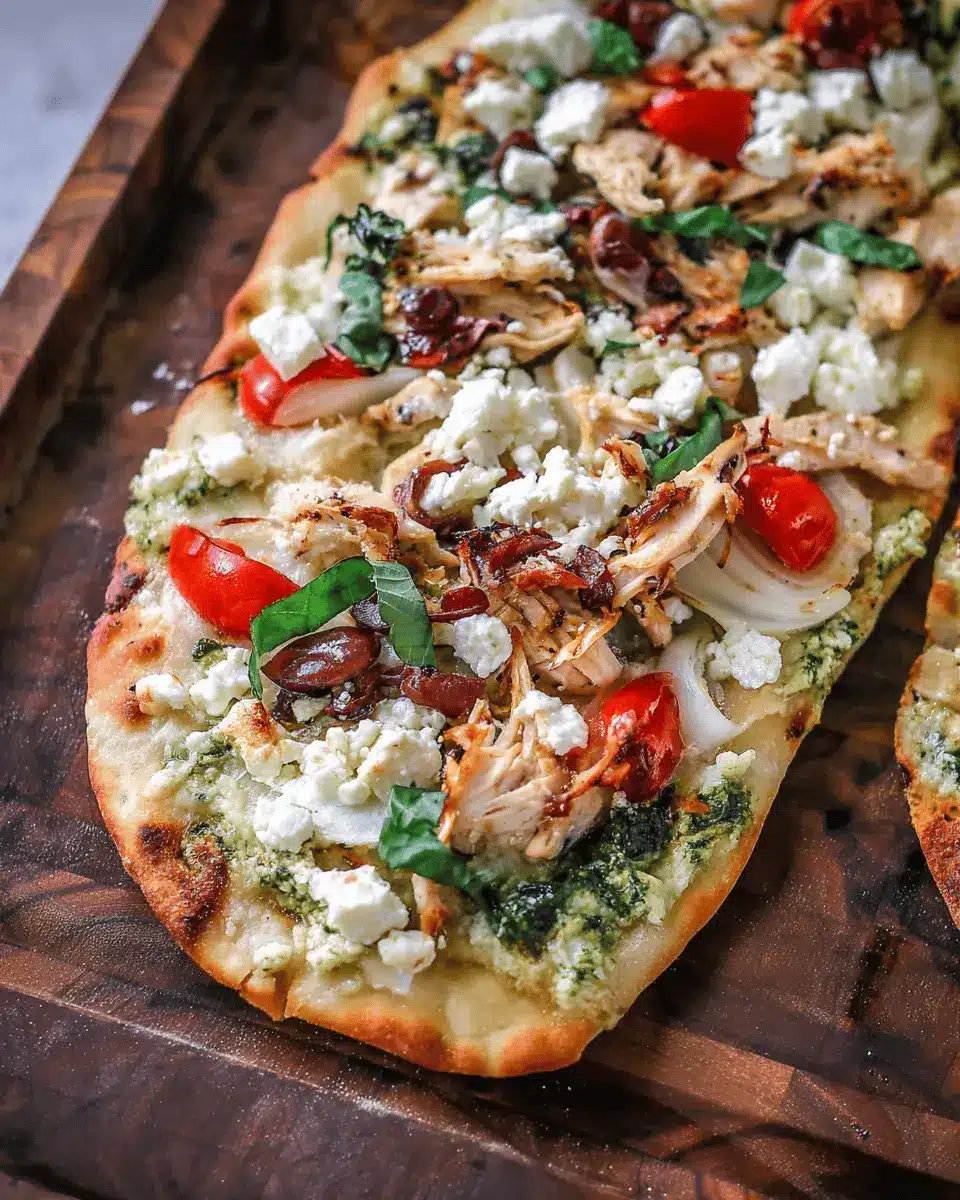 Every ingredient complements each other perfectly—from the zesty pesto to the creamy feta cheese, it’s a flavor explosion in every bite. Plus, you can customize it easily: add extra veggies or swap out the chicken for turkey if you prefer. It’s a versatile recipe that adapts to your taste. So, if you’re ready to elevate your dinner game, jump into this Mediterranean Flatbread with Chicken recipe and enjoy every moment!