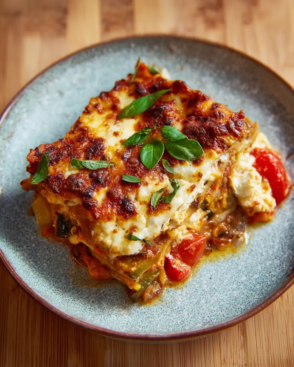 There you have it—your delicious Mediterranean-style vegetable lasagne is ready to serve! Garnish with torn basil leaves for that final touch and savor every bite. Enjoy!
