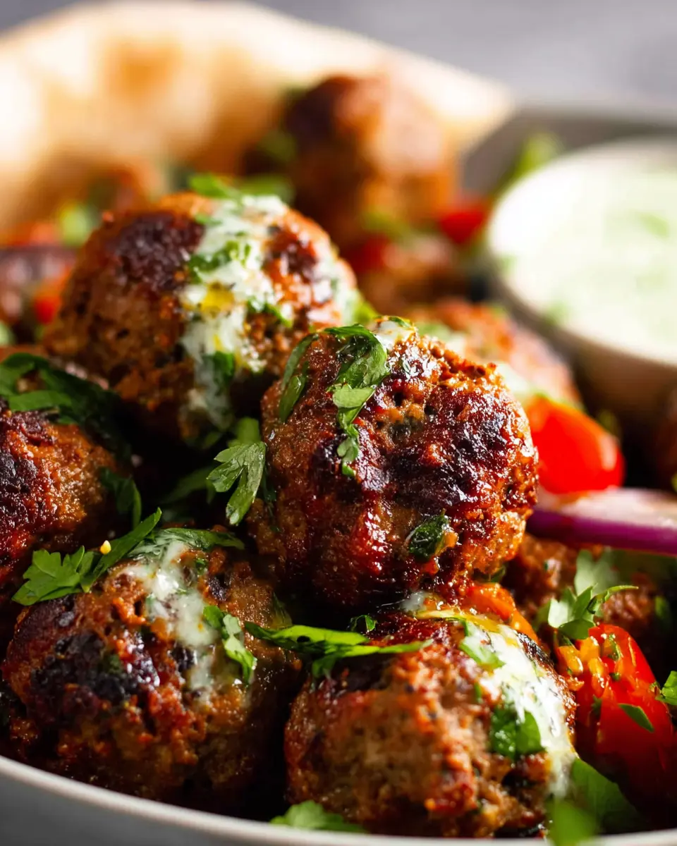 Start by preparing your minted yogurt sauce—this tangy complement will enhance the bold flavors of your meatballs perfectly.