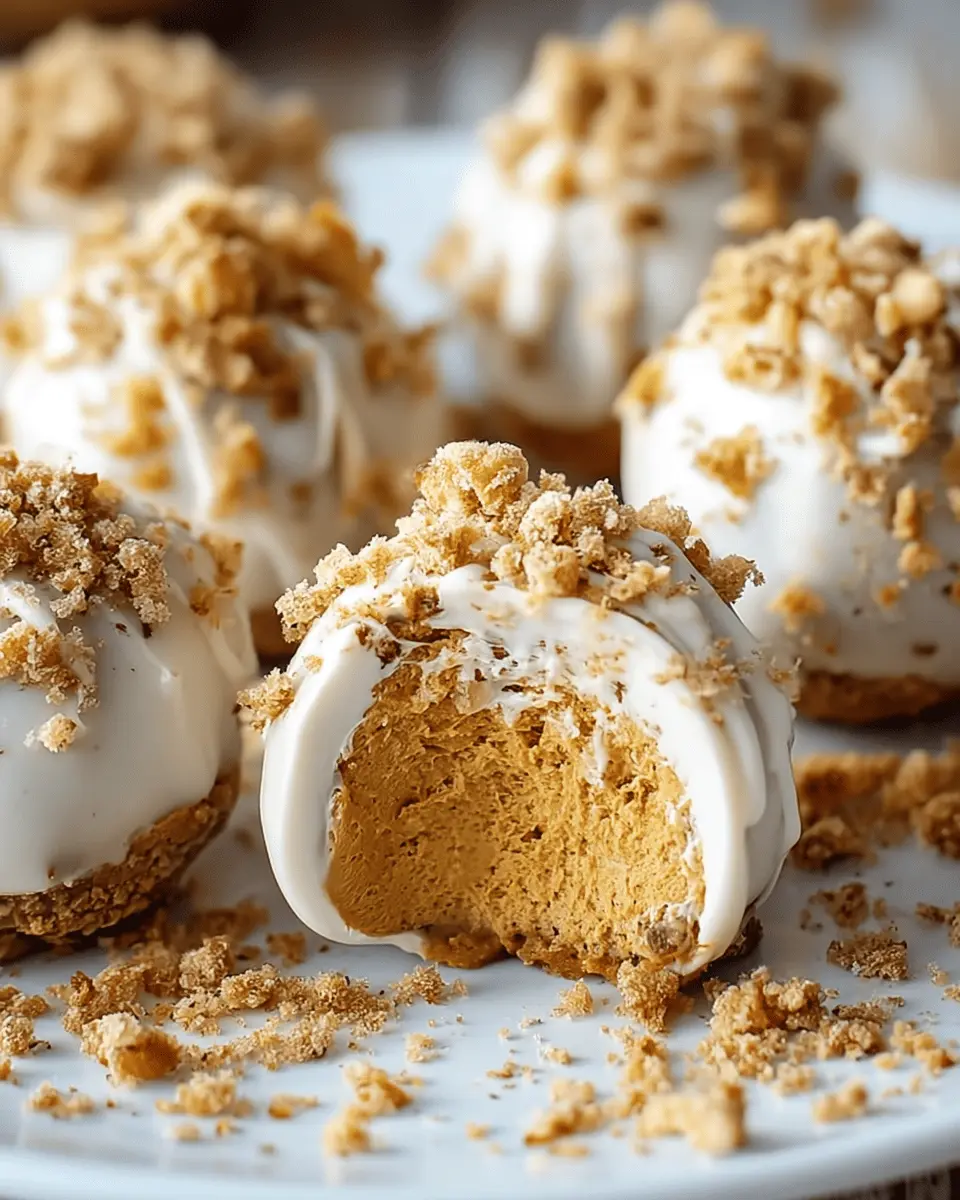 Pumpkin Cheesecake Balls with Chocolate Coating