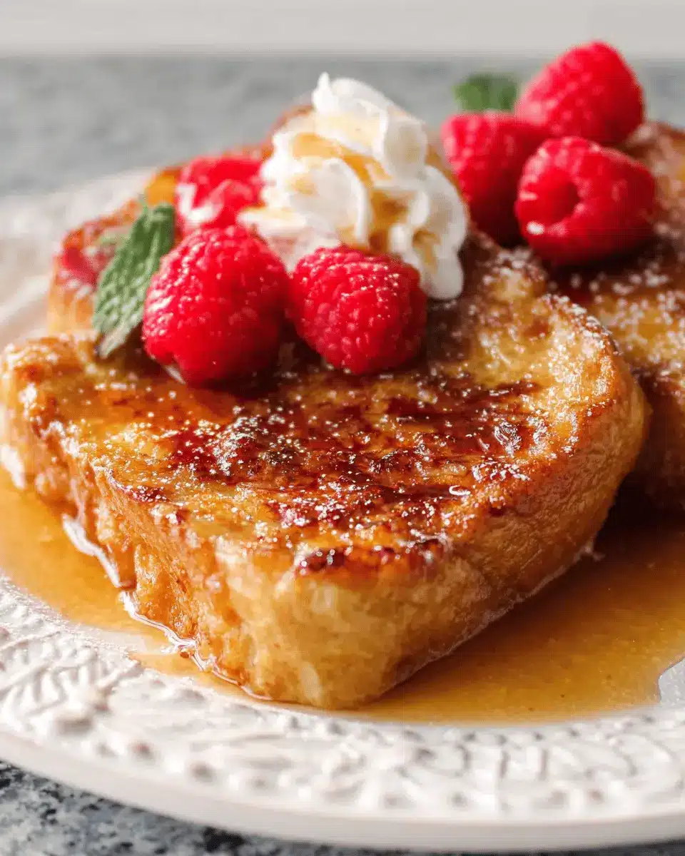 When it comes to serving your Overnight Crème Brûlée French Toast, presentation matters. Use a vibrant platter for a visually appealing spread, and consider layering the toast in stacks for height. Drizzle some maple syrup or honey over the top, and finish with a sprinkle of cinnamon or nutmeg for added warmth. Garnish with fresh mint leaves for a pop of color and freshness. These small details can turn a simple breakfast into a lovely brunch experience for your guests or even a delightful treat for yourself!