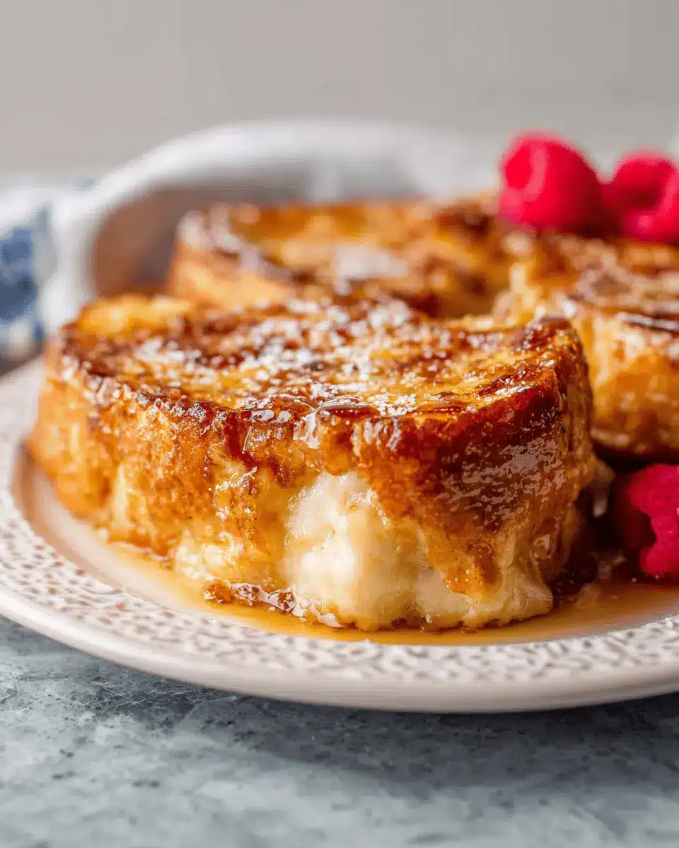 You’ll delight in the crispy caramelized top—a signature finish that brings a touch of culinary artistry to your breakfast table. Serve it alongside fresh fruit, turkey bacon, or chicken ham for a well-rounded meal. The beauty lies in its versatility, inviting you to experiment with toppings, flavors, and presentations. So why not treat yourself and your loved ones to this decadent morning masterpiece? After all, who doesn’t deserve a little luxury to kick off the day? If you’re looking for an easy way to impress, this recipe is your answer!