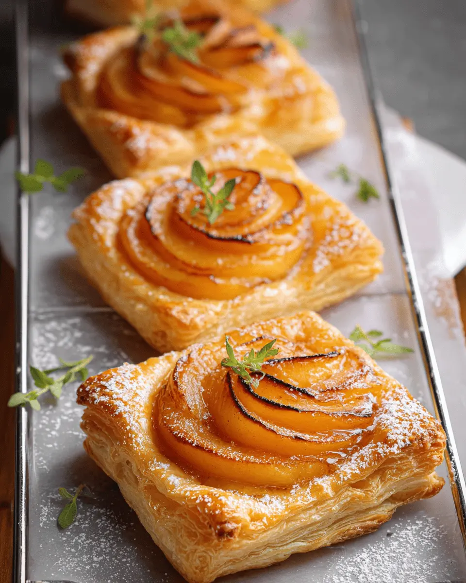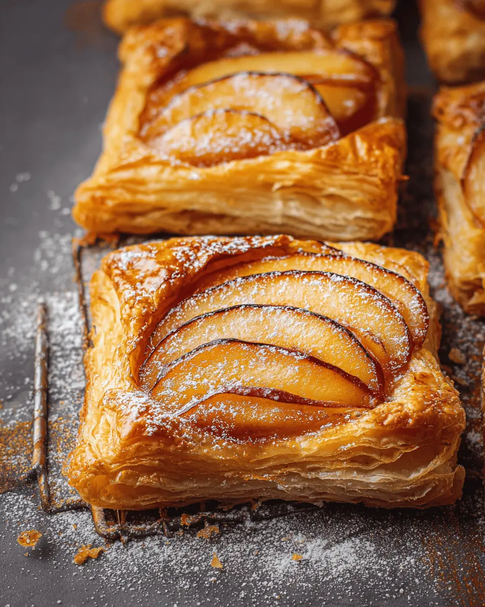 This delightful pastry is versatile as well; you can easily customize it with spices like nutmeg or different fruits such as nectarines or apples. Plus, the golden-brown puff pastry contrasts beautifully with the soft, succulent peaches inside, resulting in a dessert that not only tastes amazing but looks stunning when served.
