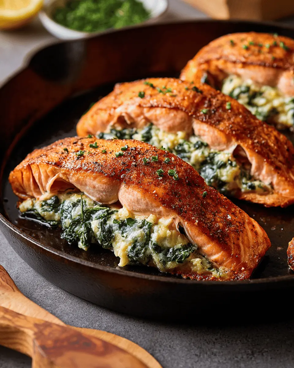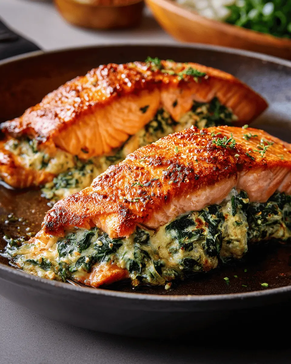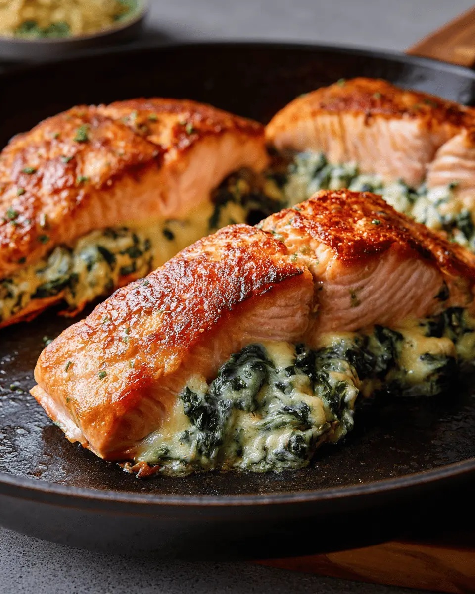 These variations make the quick-broiled creamy spinach stuffed salmon recipe not only easy to prepare but also fun to customize. Enjoy exploring different flavors and ingredients! For more salmon inspiration, check out Seafood Nutrition Partnership for great health benefits of including fish in your diet.