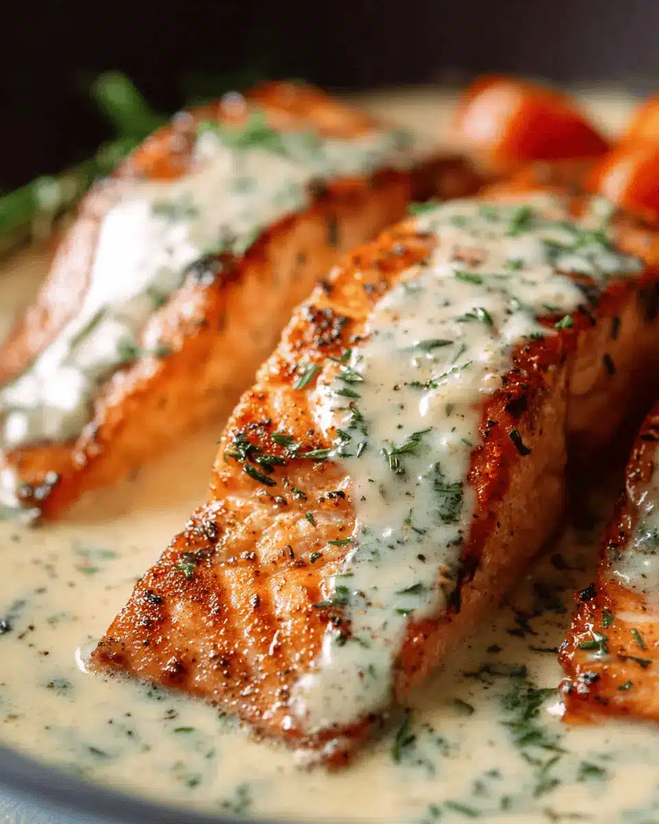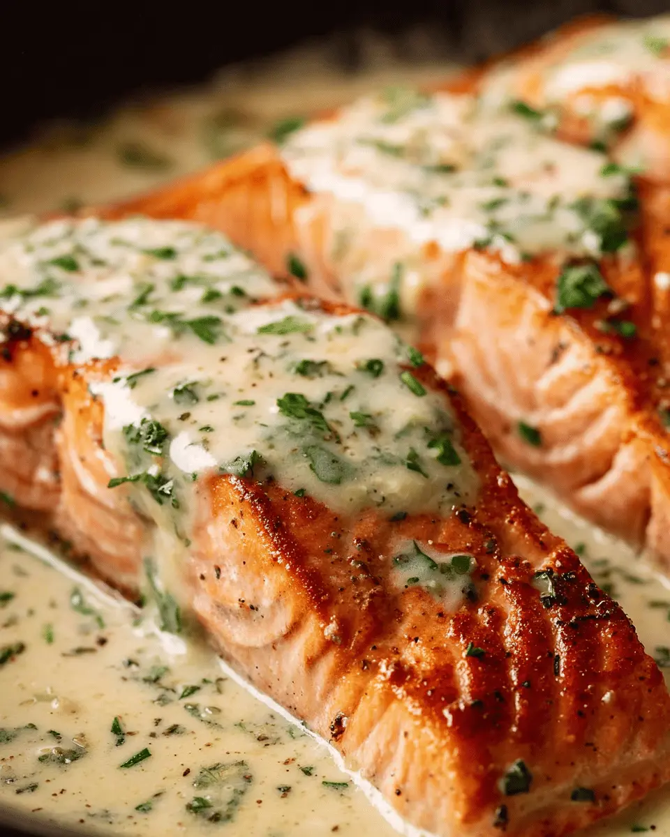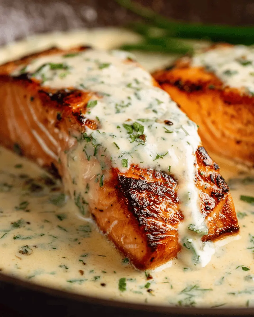 Salmon with Herb & Garlic Cream Sauce: A Simple Indulgence for Home Chefs