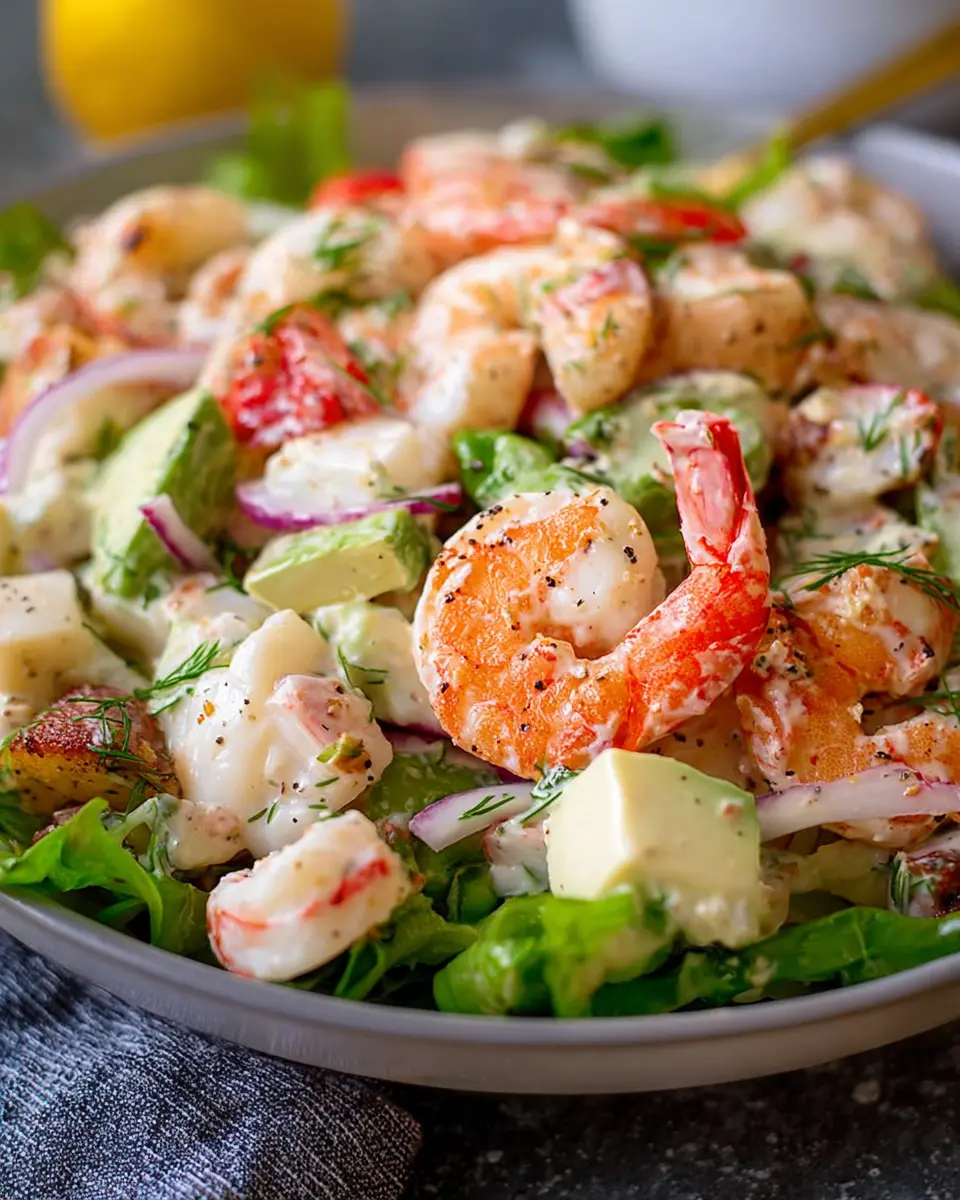 Pair your delicious seafood salad with a side of crispy crusty bread for a satisfying crunch, or enjoy it over a bed of greens for a light yet filling meal. A side of grilled or roasted vegetables complements the flavors beautifully, making your meal both healthy and flavorful. If you’re really feeling fancy, consider including a creamy soup or a tangy potato salad to round out the dining experience.