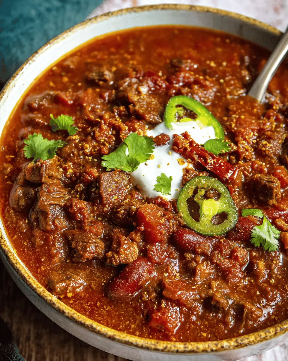 Finally, it’s time to serve! Ladle the warm, delicious chili into bowls and adorn with your favorite toppings—think cheese, sour cream, or fresh cilantro. Enjoy each spoonful of this cozy, flavorful dish that’s sure to impress!