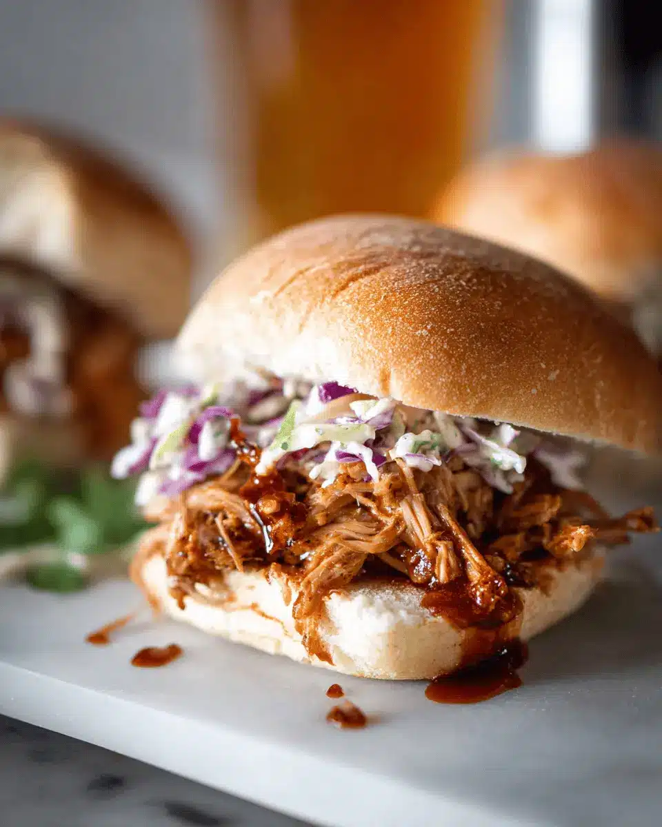The slow cooker BBQ pulled pork sandwich is a crowd-pleaser that’s easy to make and always impresses at gatherings. With tender beef, vibrant BBQ sauce, and crunchy coleslaw, each bite is a flavor explosion. Try it for your next meal, and watch your kitchen become the new favorite spot!