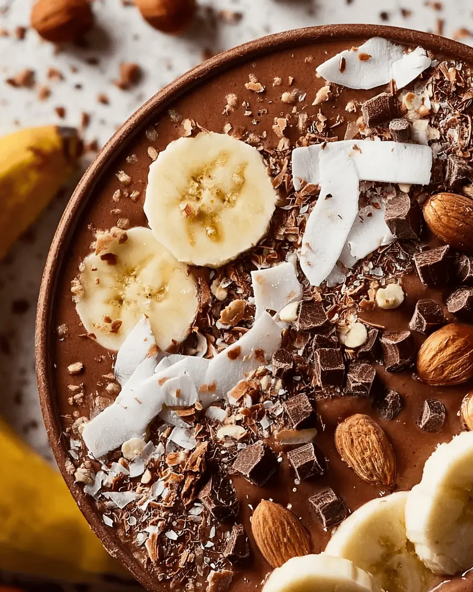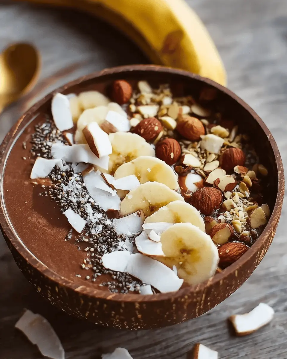 Smoothie bowl chocolat: Indulgent banana, hazelnuts, and coconut delight