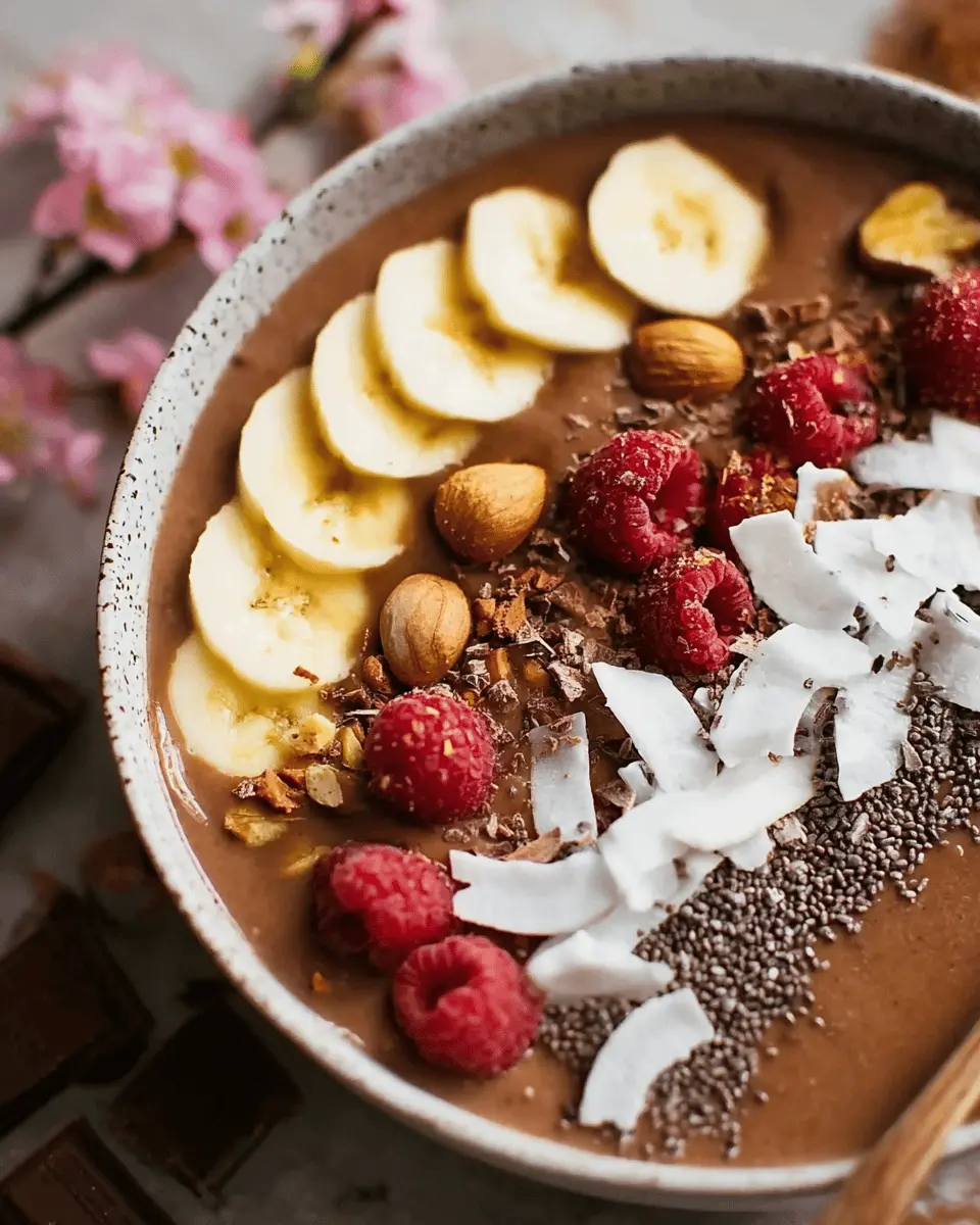 Elevate your smoothie bowl chocolat by arranging a colorful display of toppings. Consider layering your bowl with: