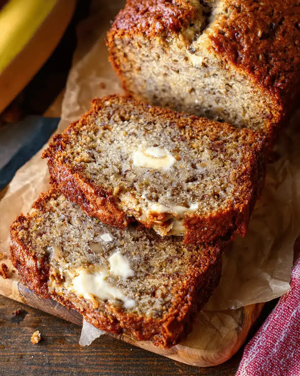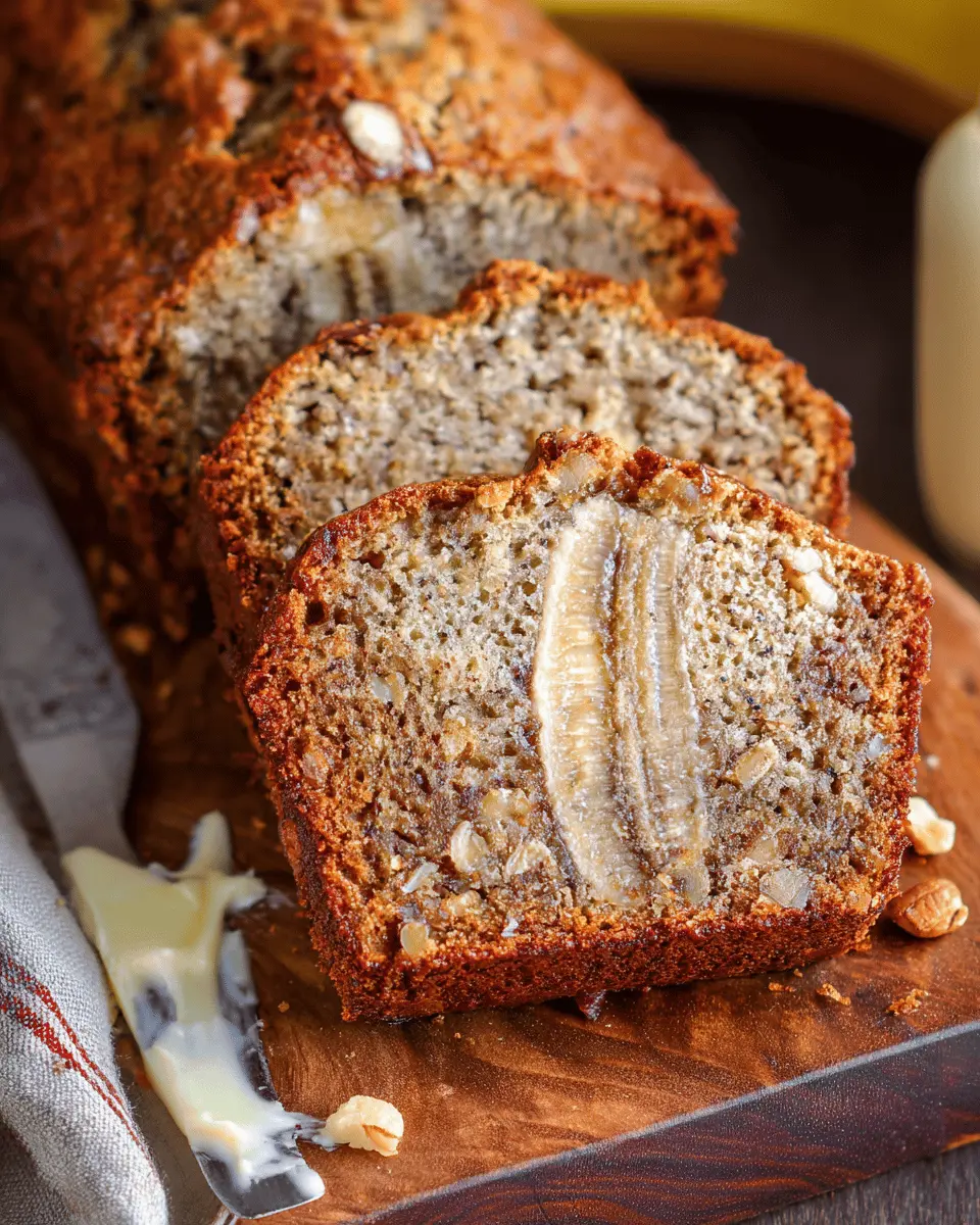 This banana bread isn’t just a dessert; it’s perfect for breakfast or a midday snack too. Serve a slice with a side of yogurt and some fresh fruit for a balanced morning meal. Alternatively, enjoy a piece on its own as a satisfying pick-me-up during your busy day.