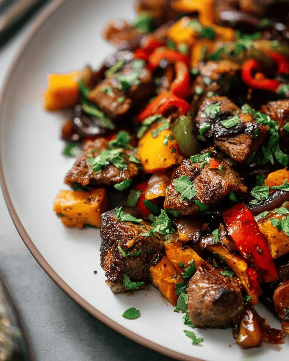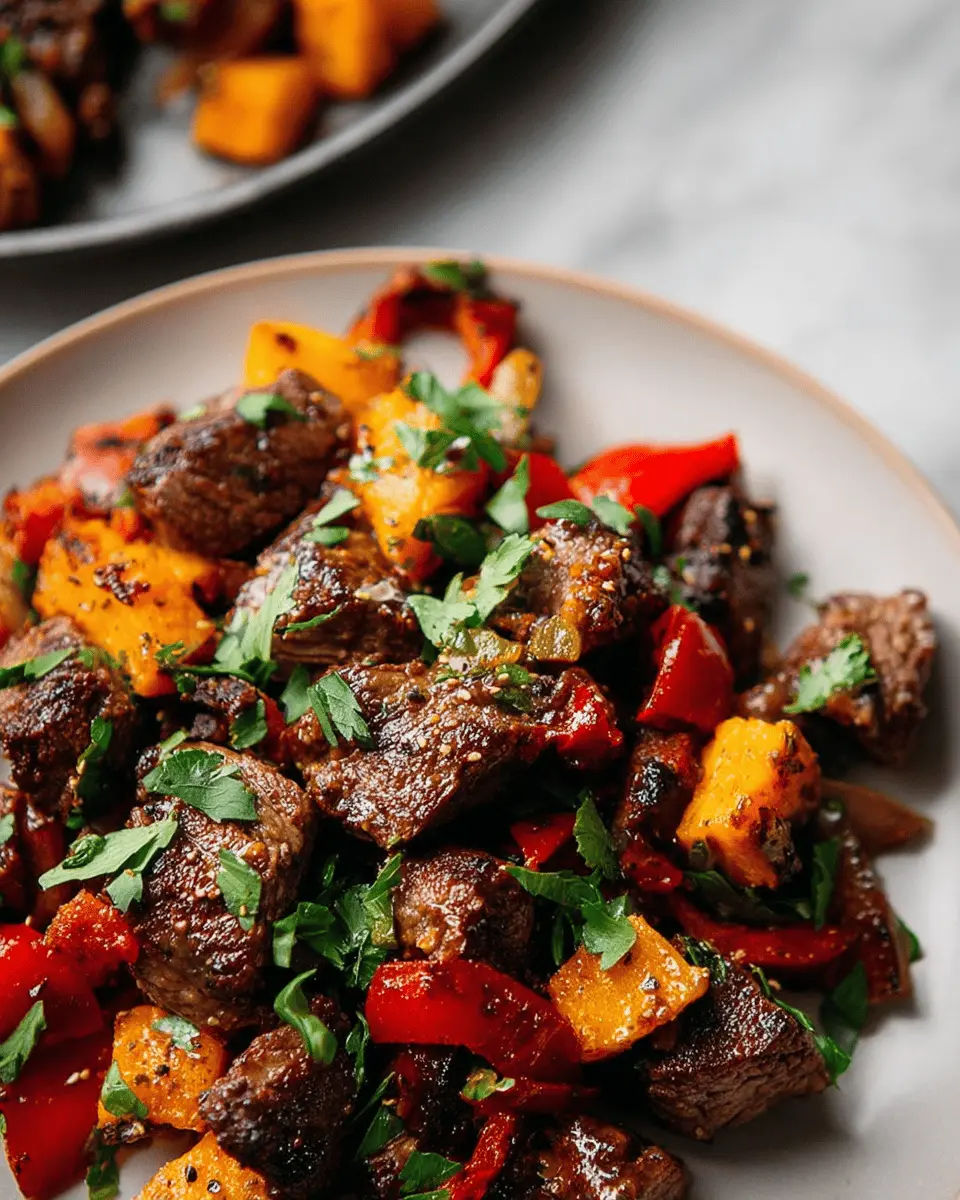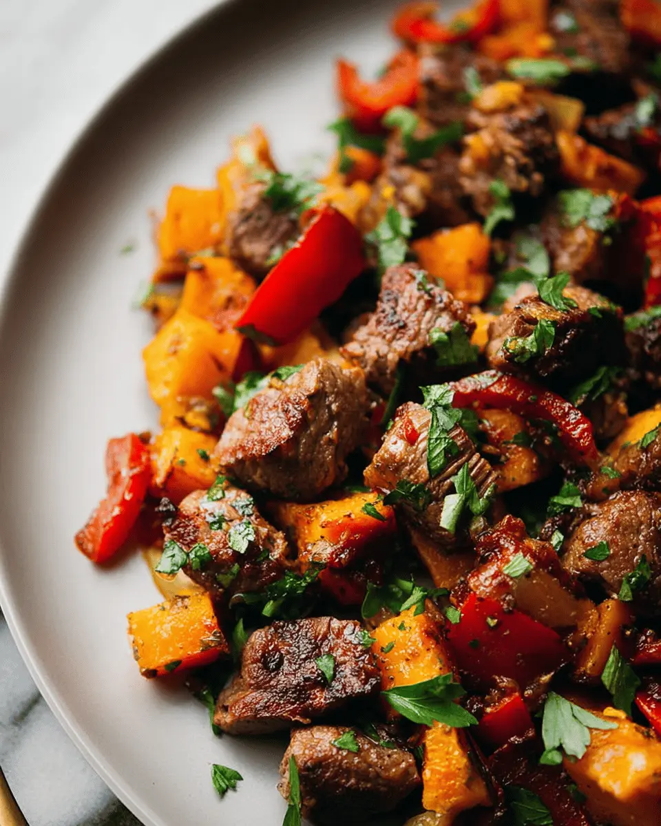 Steak Bites with Sweet Potatoes and Peppers