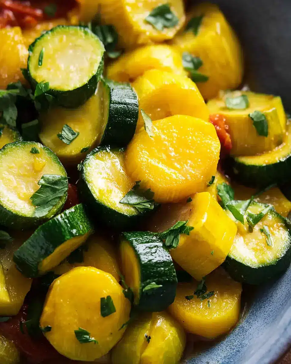 This recipe is naturally vegetarian and can easily be made vegan by ensuring the olive oil is the only fat used. For a low-carb version, feel free to skip the added salt or substitute it with herbs for flavor. If you’re looking for added protein, consider mixing in chickpeas or tofu, which pair wonderfully with the stewed summer squash. For more specific dietary adjustments, like gluten-free or low-fat, you can always consult health resources or nutritionists to tailor the recipe to your needs.