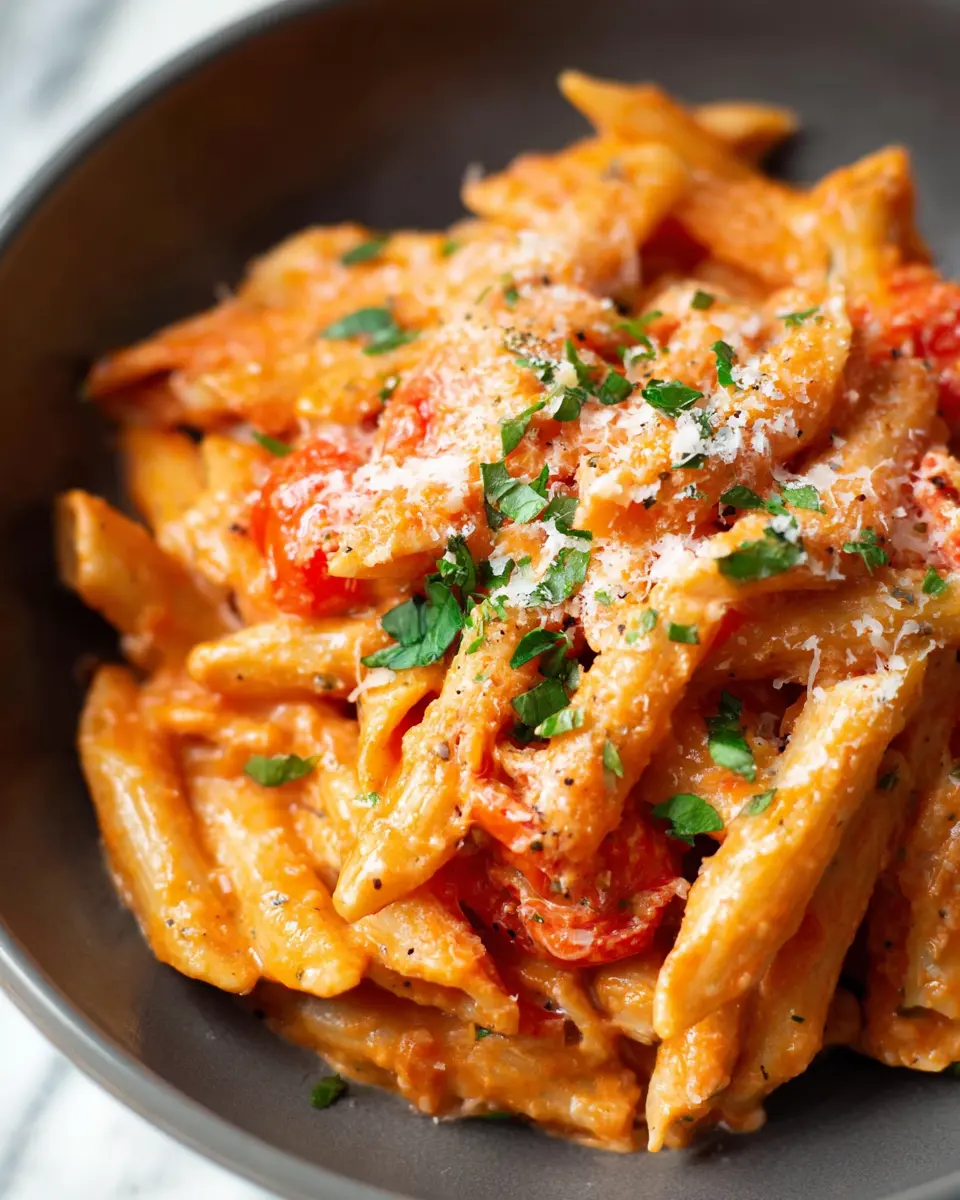 Finally, the moment of truth—time to serve! Plate your super easy creamy tomato pasta and sprinkle freshly grated parmesan cheese over the top for that final touch. If you’d like, add a dash of crushed red pepper or some fresh basil to elevate the flavors. Enjoy a comforting bowl that will leave your taste buds dancing!