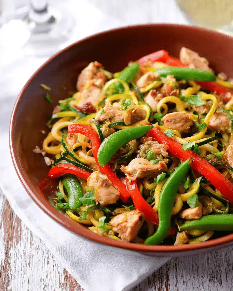 In just a quick 20-minute meal, the Zucchini Noodle Stir Fry with Chicken strikes a perfect balance between health and flavor. With vibrant veggies and tender chicken coated in a savory sauce, it’s the ideal dish for a busy weeknight. Enjoy this delicious, nutrient-rich stir fry anytime!